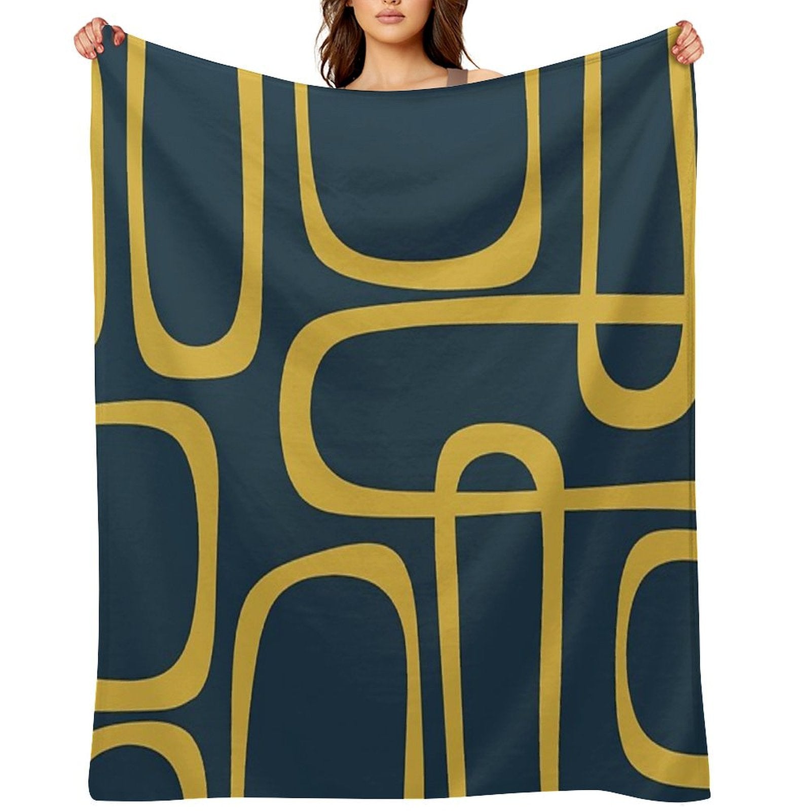 Midcentury Modern Loops Retro Pattern in Light Mustard And Navy Blue Throw Blanket