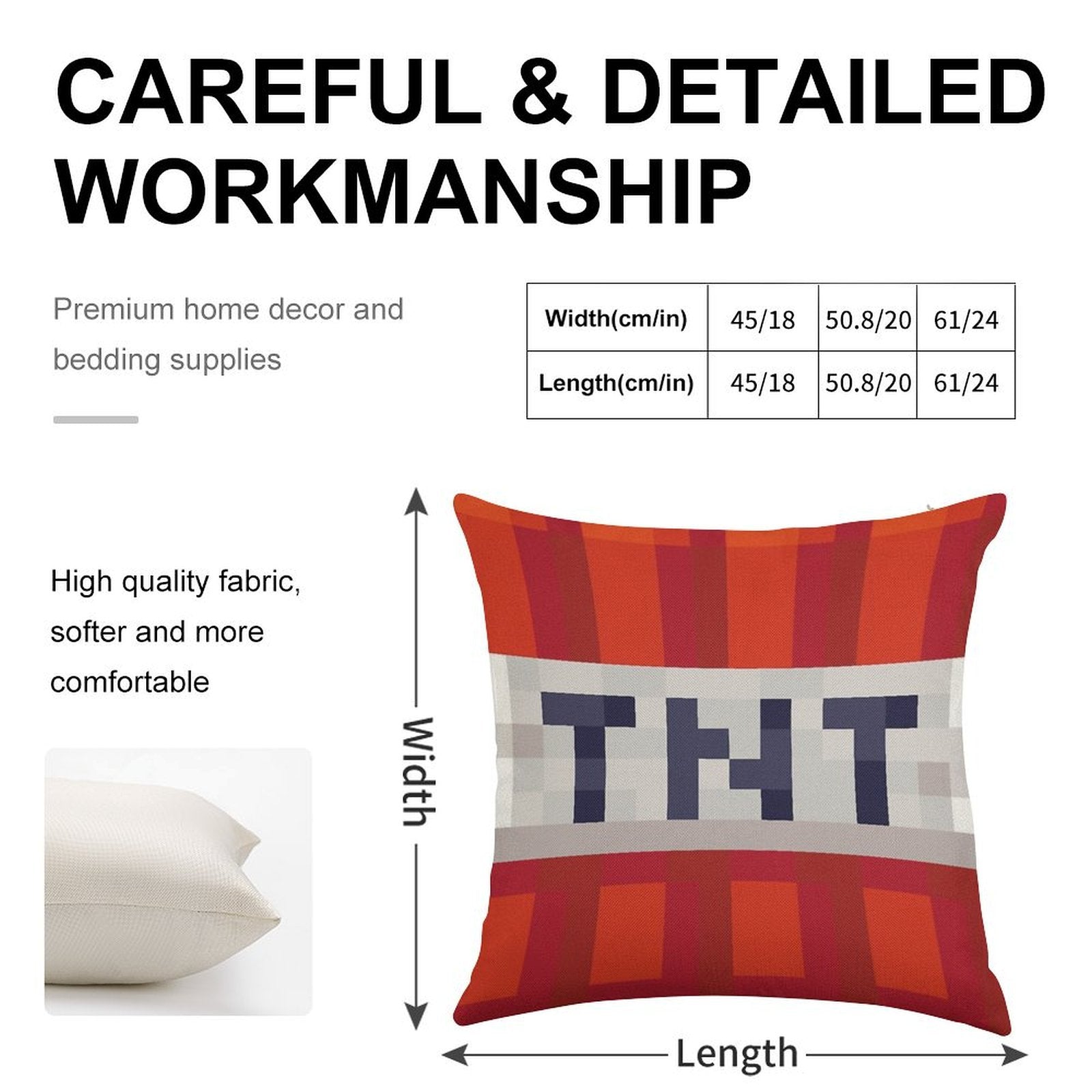 - Machine or hand washable (max 45°C). Avoid bleach and prolonged soaking to preserve the vibrant texture of your Minecraft TNT Block Luxury Pillow Cover.