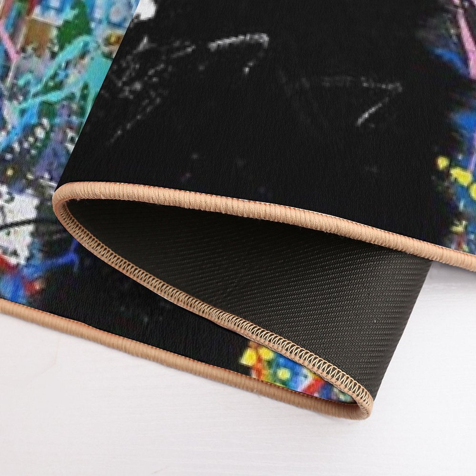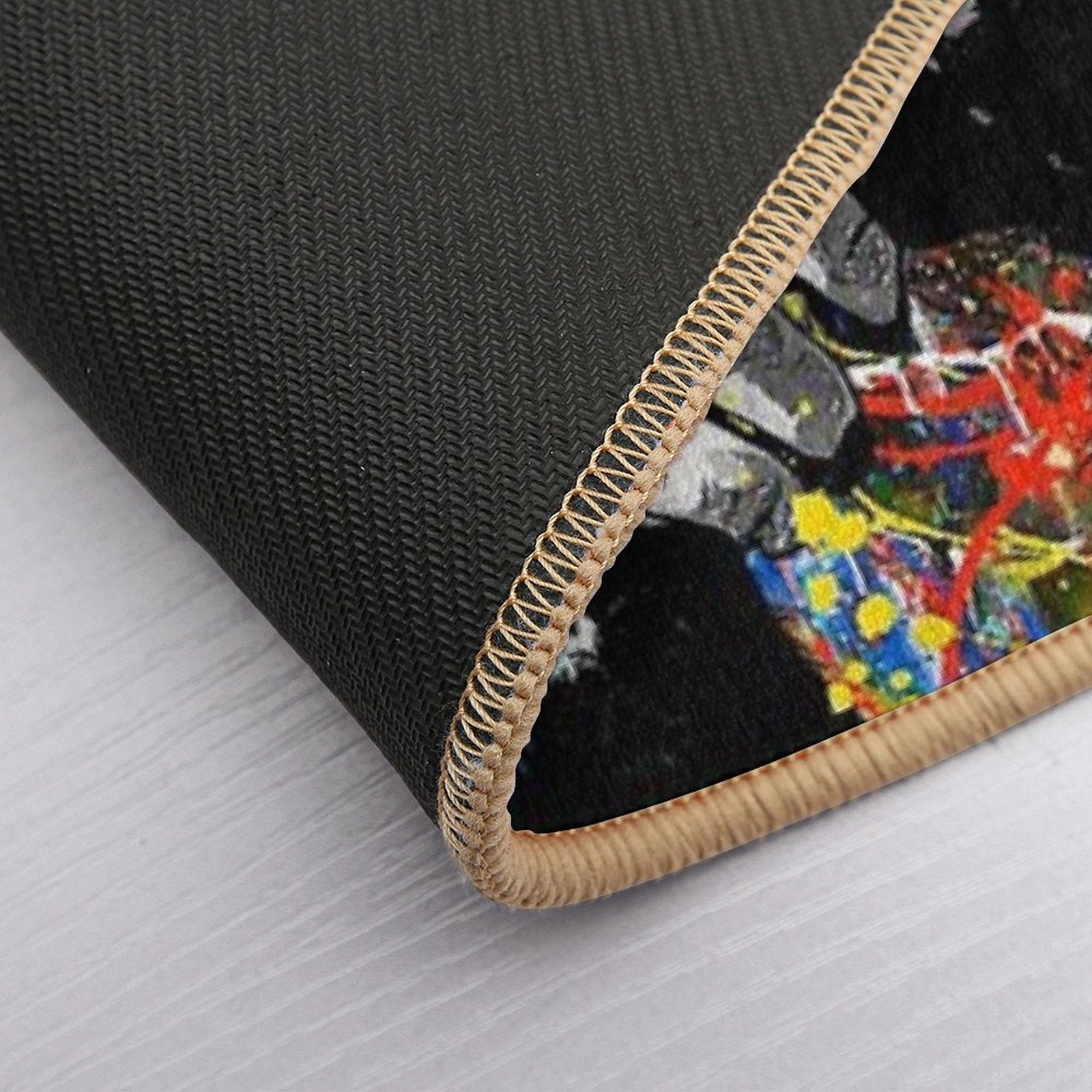 - Non-slip rubber backing grips floors securely, ideal for Monkey Thinker - Banksy Urban Contemporary Colorful Street Art - DJ Chimp Mat placements on tiles, wood, or marble.