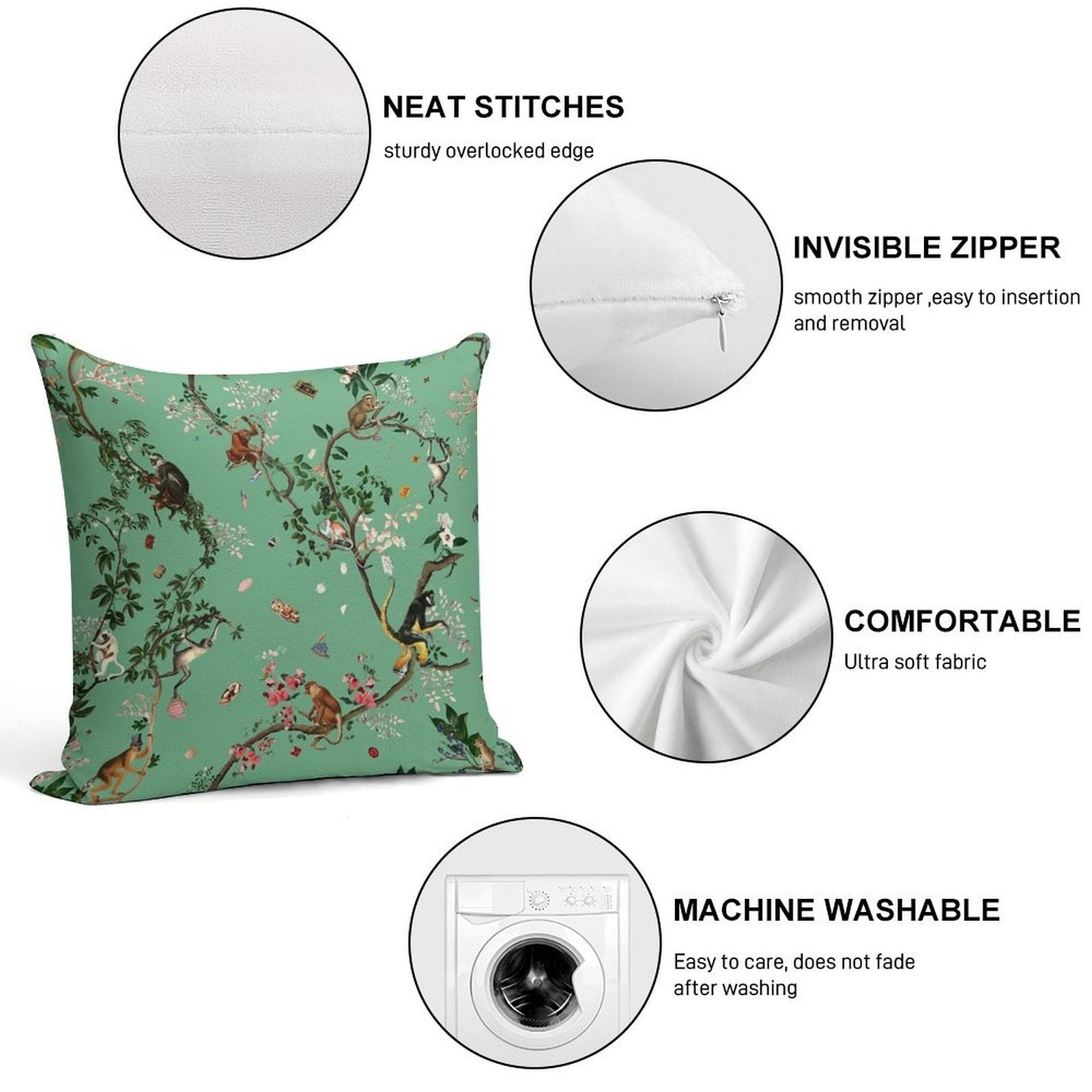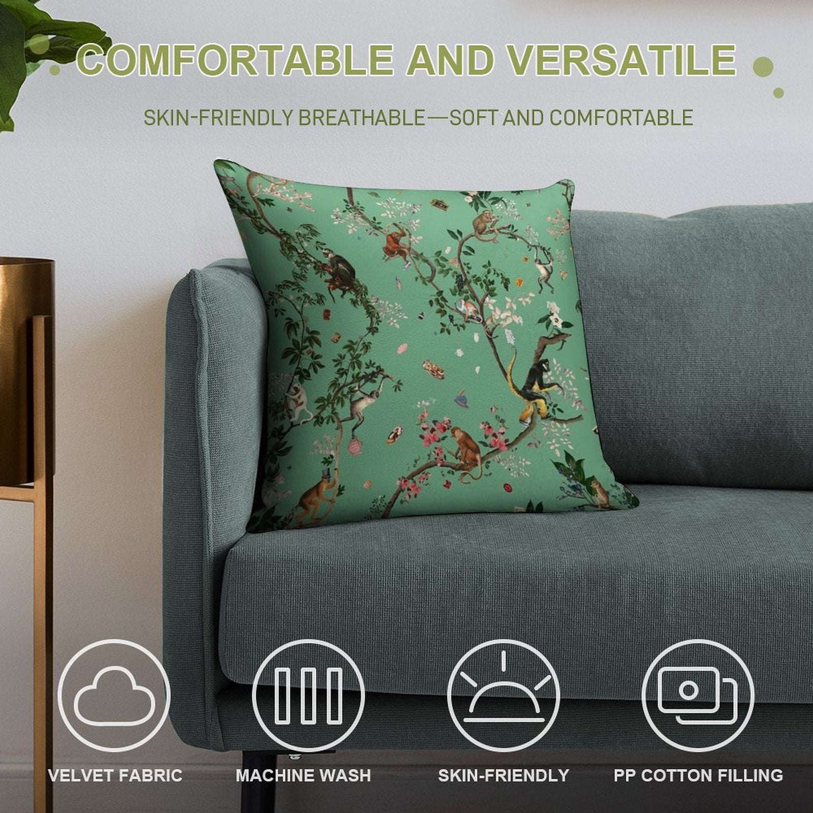 Monkey World Green Soft Warmth Comfort Throw Pillow