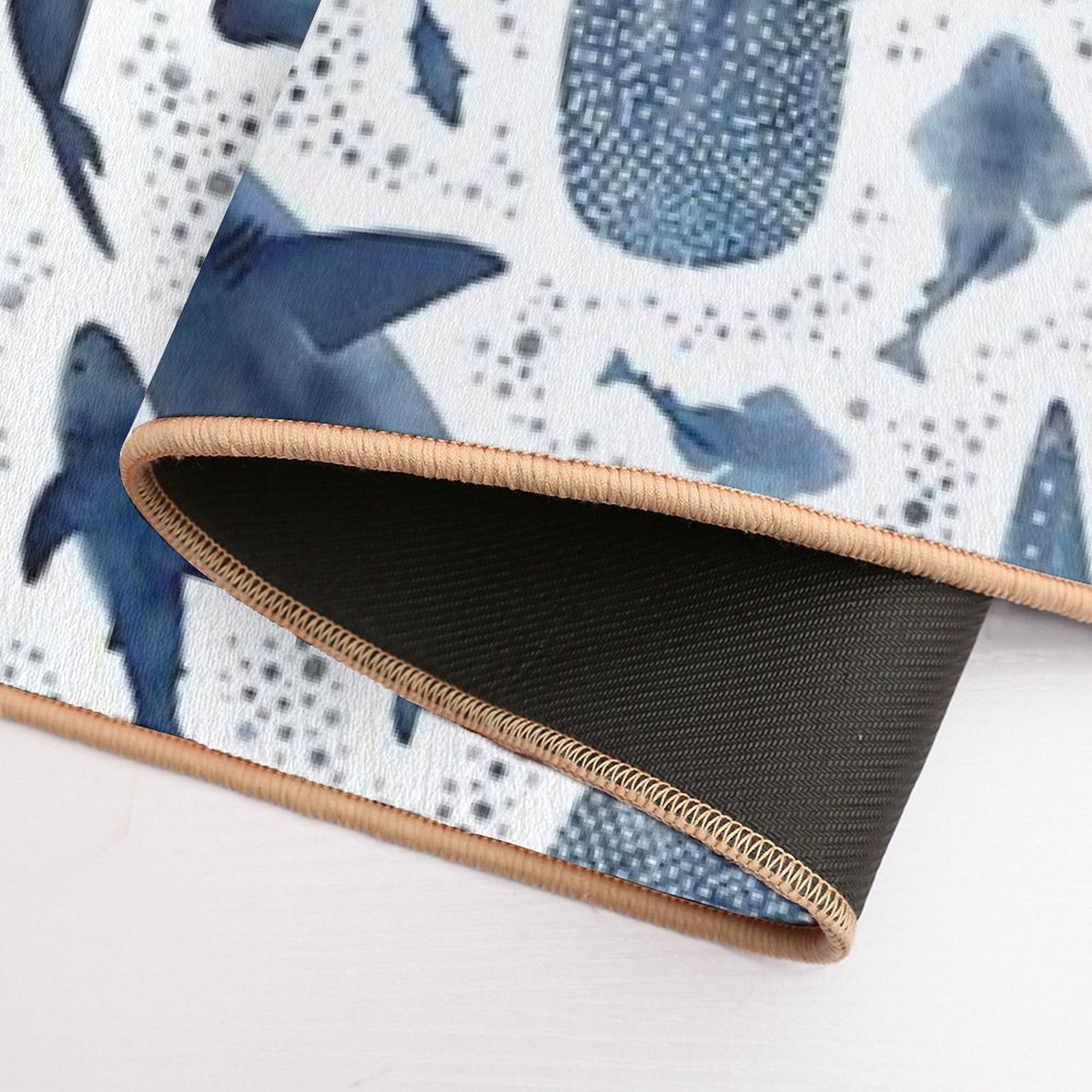 - Non-slip rubber backing grips floors securely, ideal for Monochrome Blue Watercolour Shark Ocean on White Mat placements on tiles, wood, or marble.