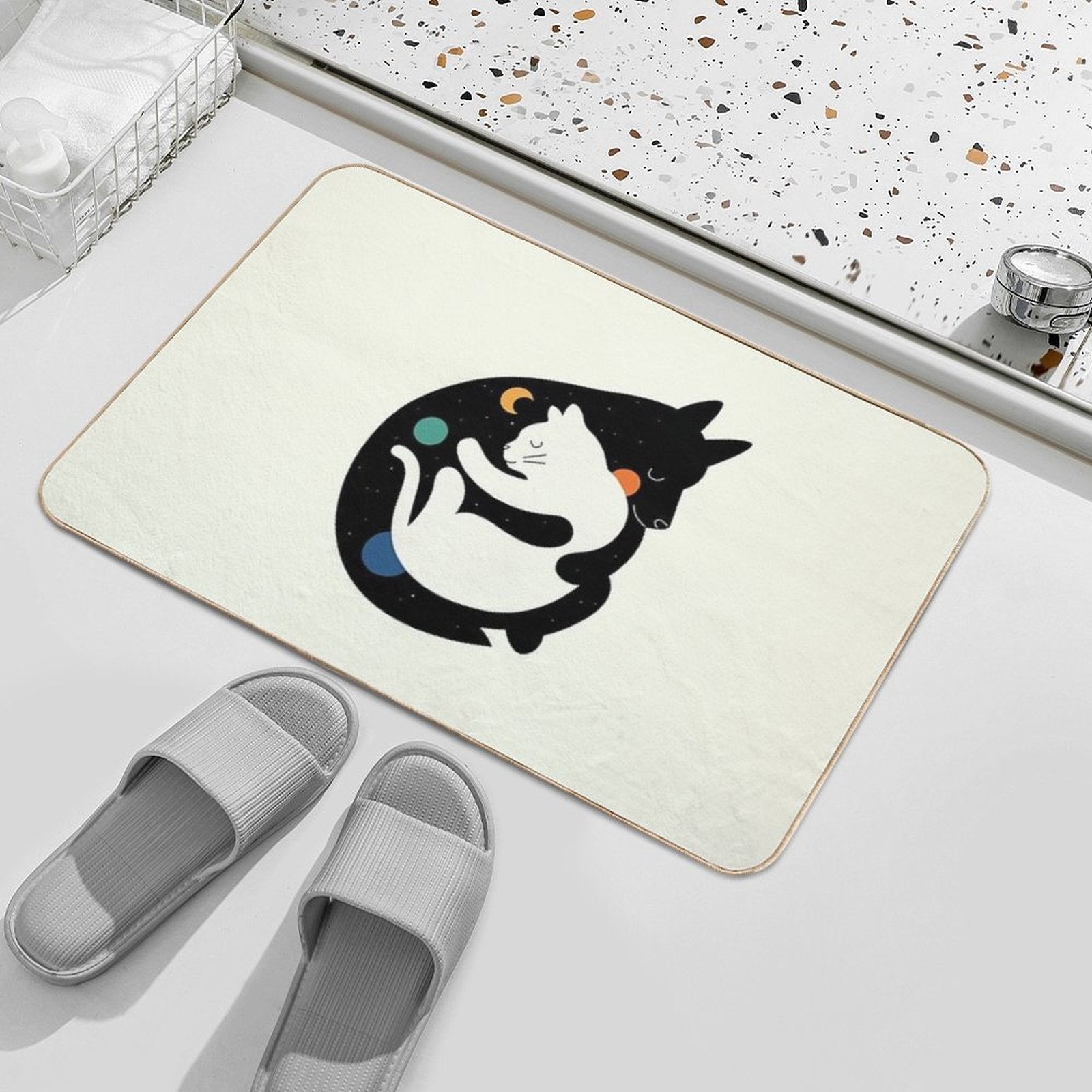 - Non-slip rubber backing grips floors securely, ideal for More Hugs Less Fights Mat placements on tiles, wood, or marble.