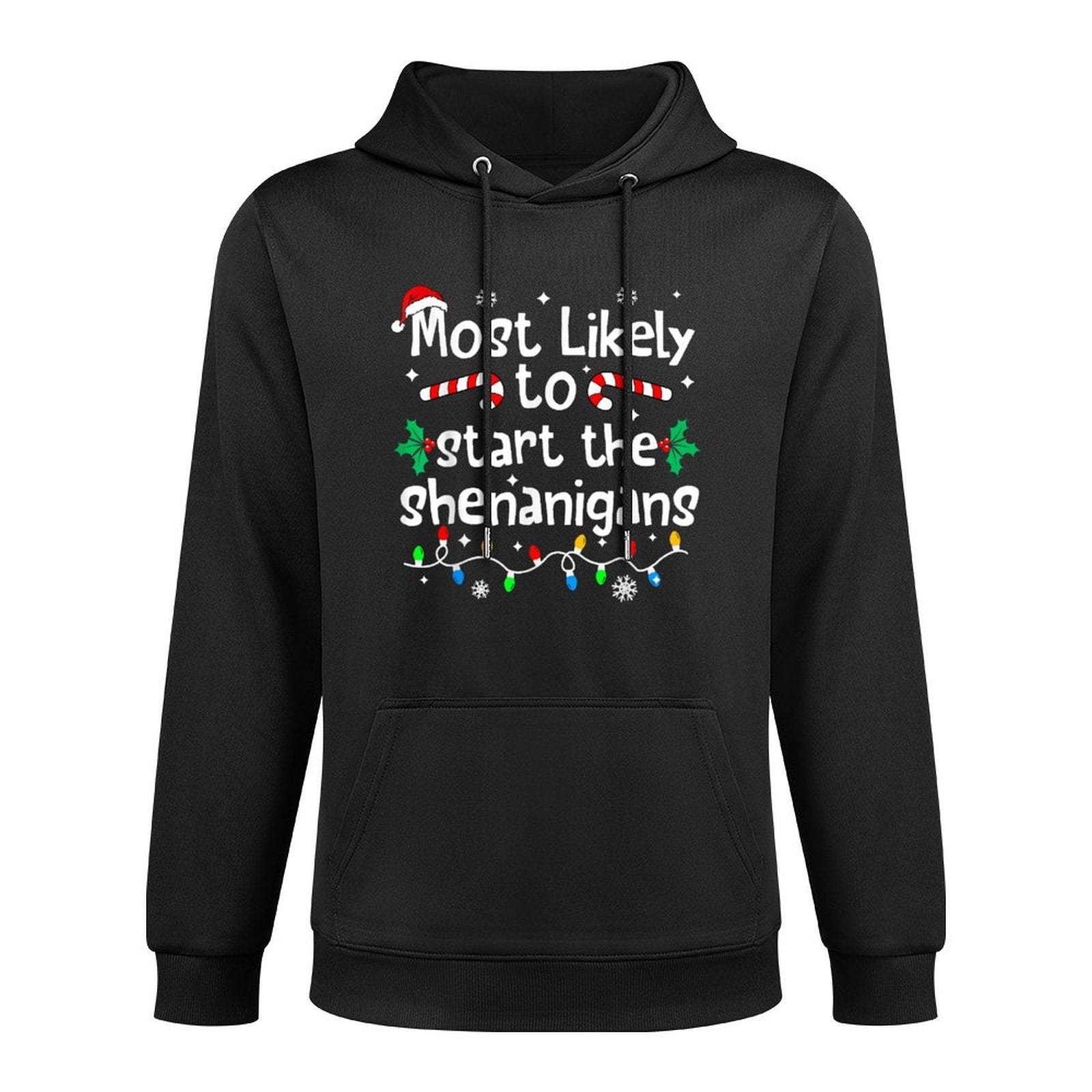 Most Likely to Start The Shenanigans Christmas Matching Adjustable Hood Hoodie