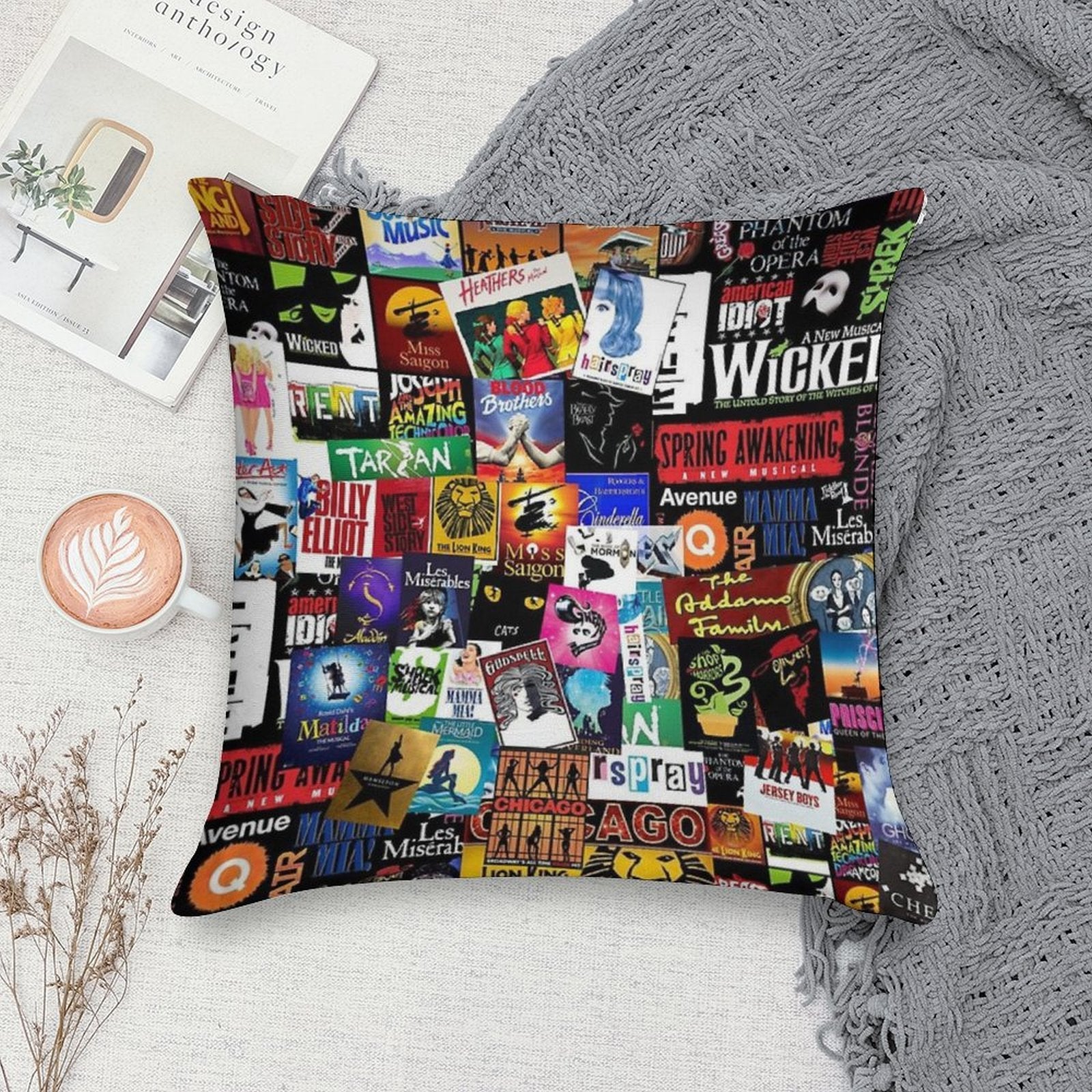 Musicals Collage II Original Soft Fade-Resistant Throw Pillow