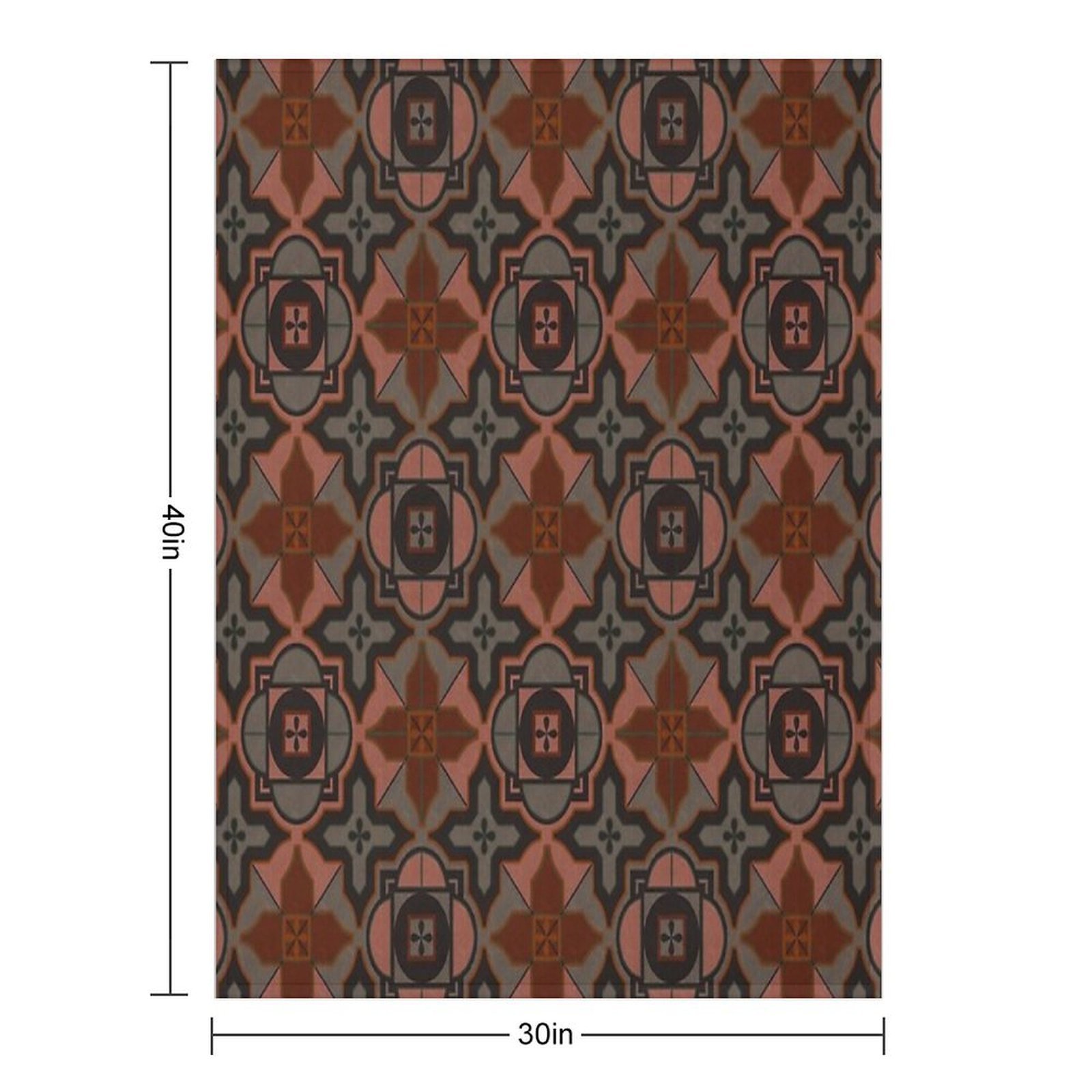 Muted Gray Acorn Brown Arabesque Style Tile Pattern Blanket Size Chart: