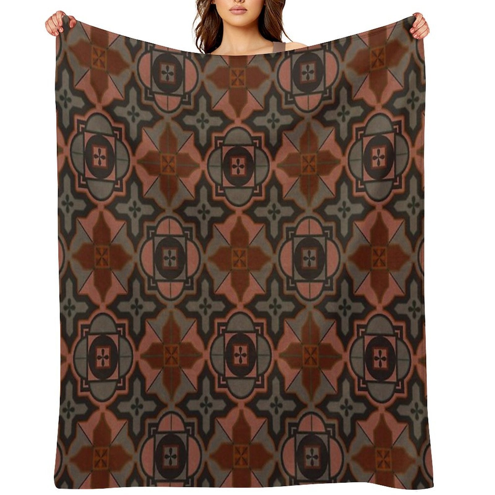 Muted Gray Acorn Brown Arabesque Style Tile Pattern Throw Blanket