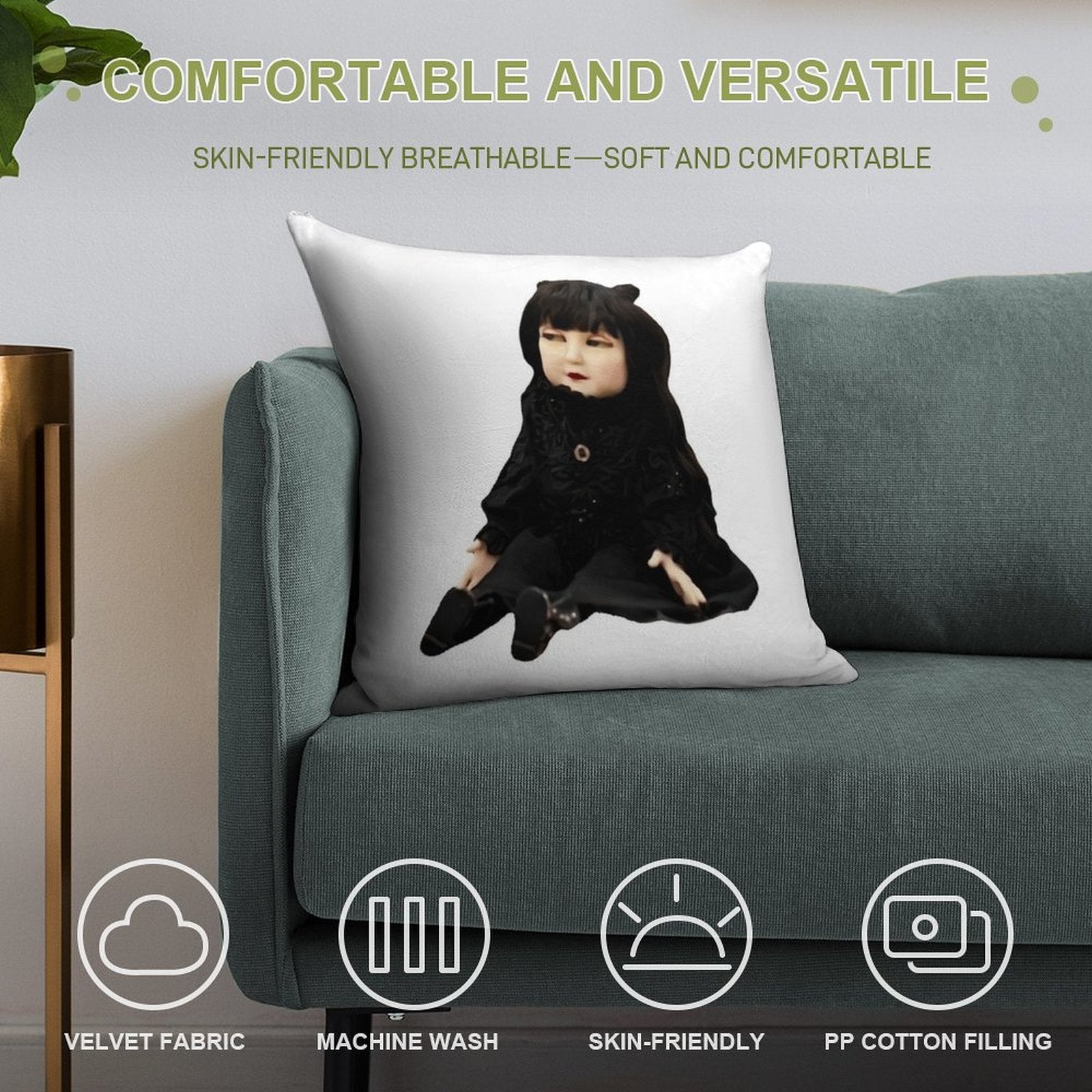 Nadja Doll Soft Short Plush Fabric Throw Pillow