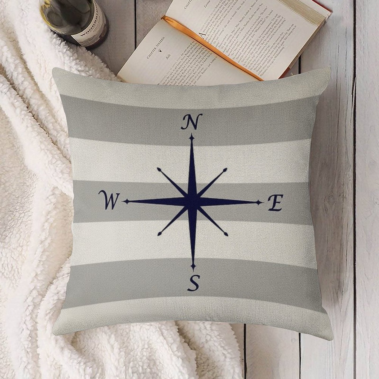 - Double-Stitched Edges: Precision stitching prevents fraying, stretching, and pilling, ensuring your Nautical Navy Blue Compass On Silver Gray And White Stripes Linen Throw Pillow Cover stays pristine through countless uses.