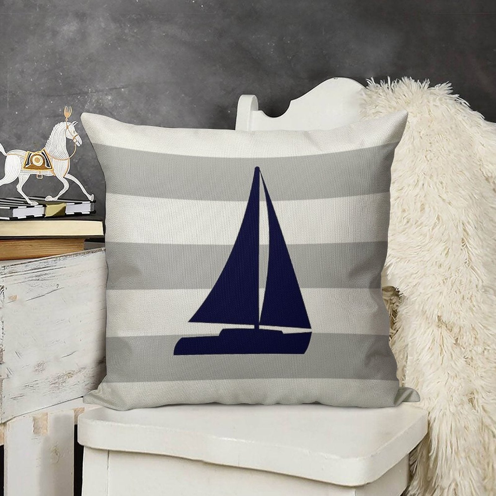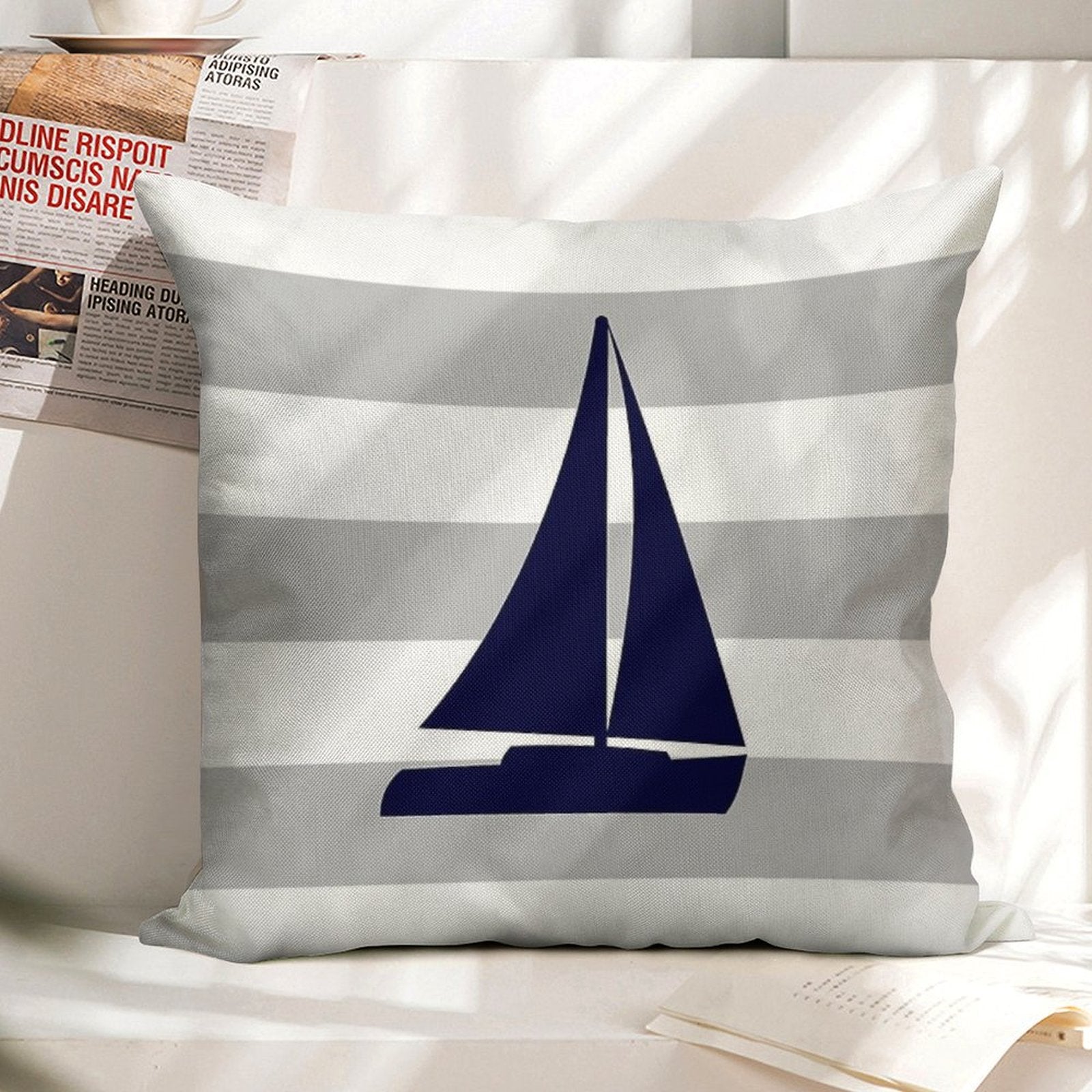 - Machine or hand washable (max 45°C). Avoid bleach and prolonged soaking to preserve the vibrant texture of your Nautical Navy Blue Sailboat On Silver Gray Stripes Luxury Pillow Cover.