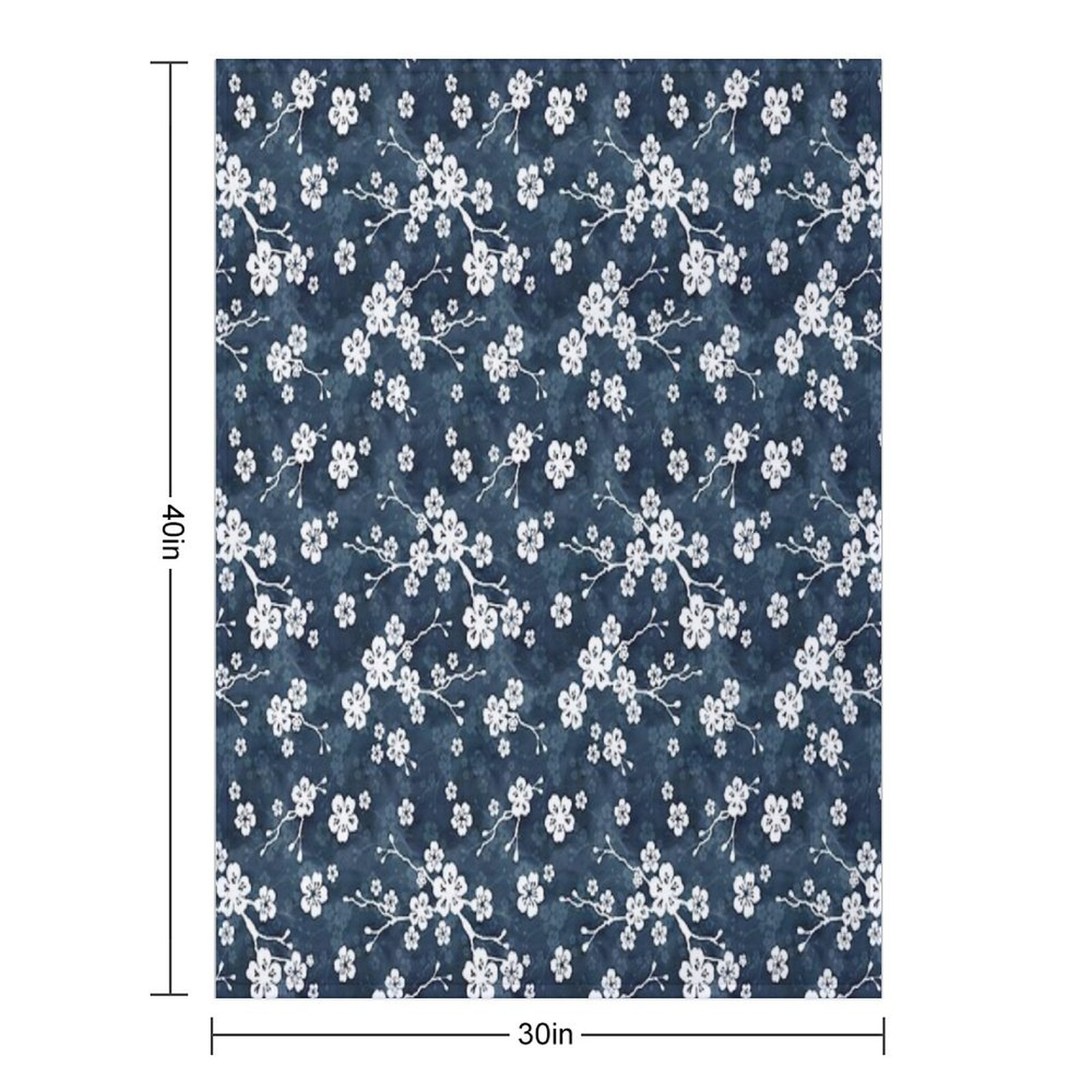 Navy And White Cherry Blossom Pattern Blanket Size Chart: