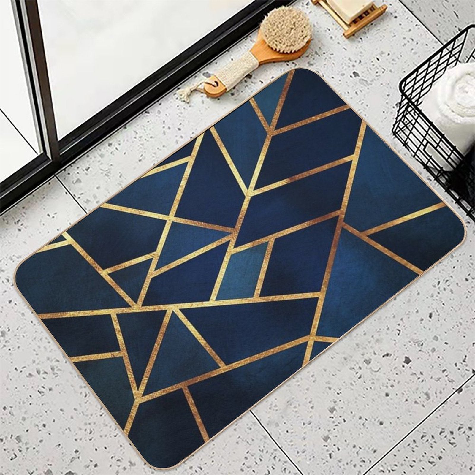 - Non-slip rubber backing grips floors securely, ideal for Navy Gold Stone Geometric Mat placements on tiles, wood, or marble.