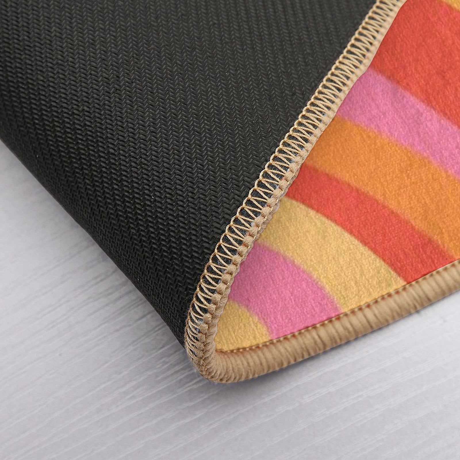 - Non-slip rubber backing grips floors securely, ideal for New Groove Retro Swirl Abstract Pattern Pink Orange Yellow Mat placements on tiles, wood, or marble.