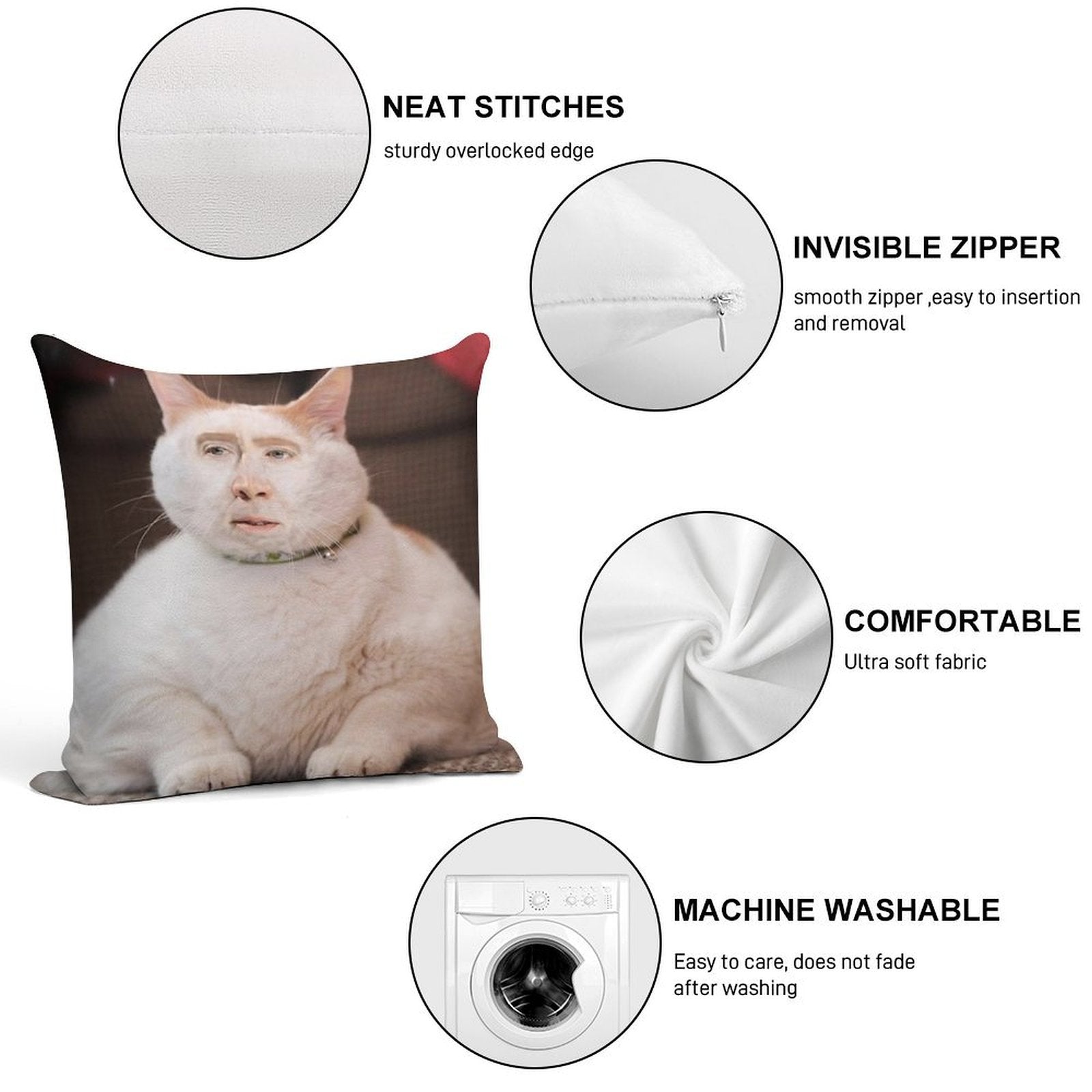Nicolas Cage Cat Soft Durable Construction Throw Pillow