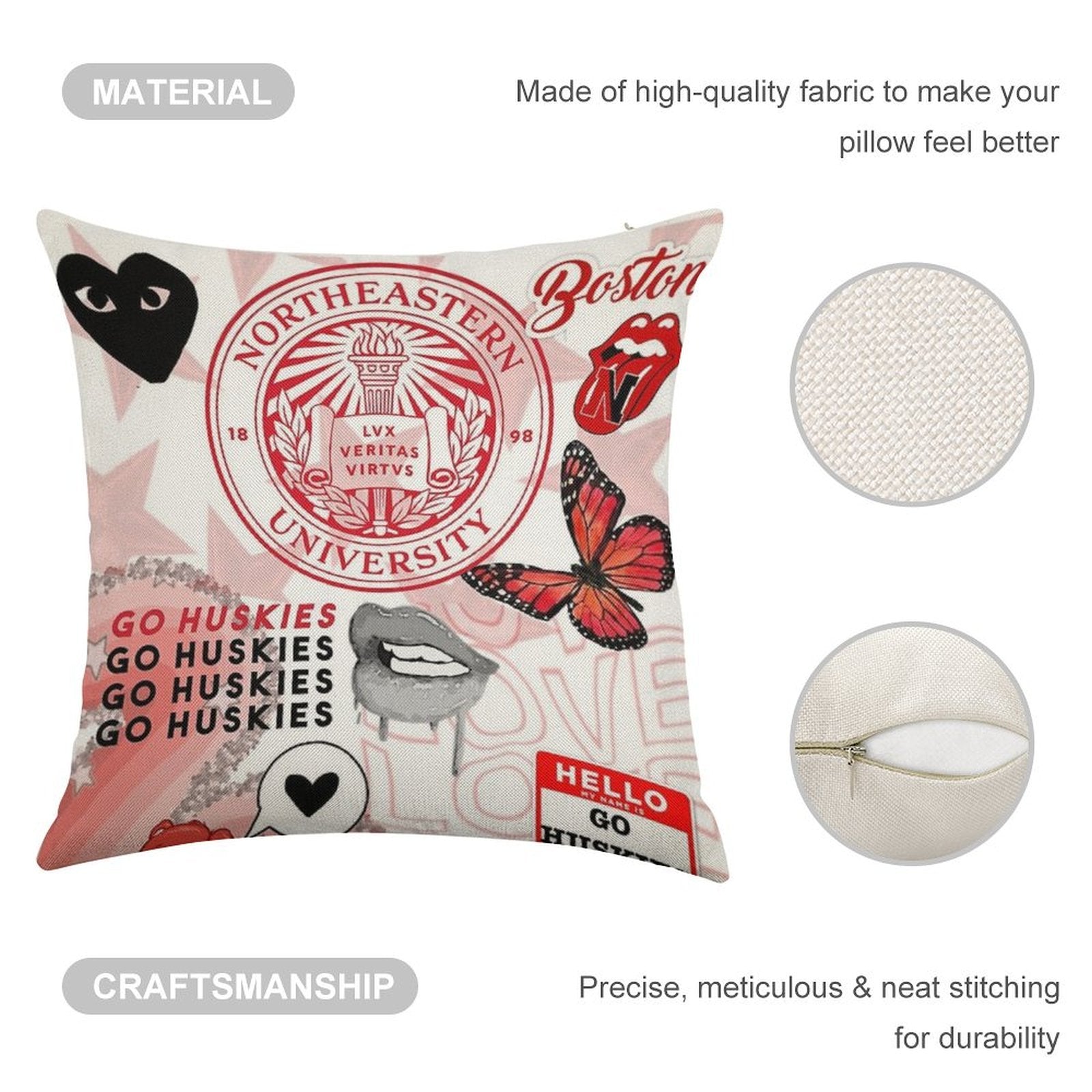 NORTHEASTERN COLLAGE Linen Throw Pillow Cover