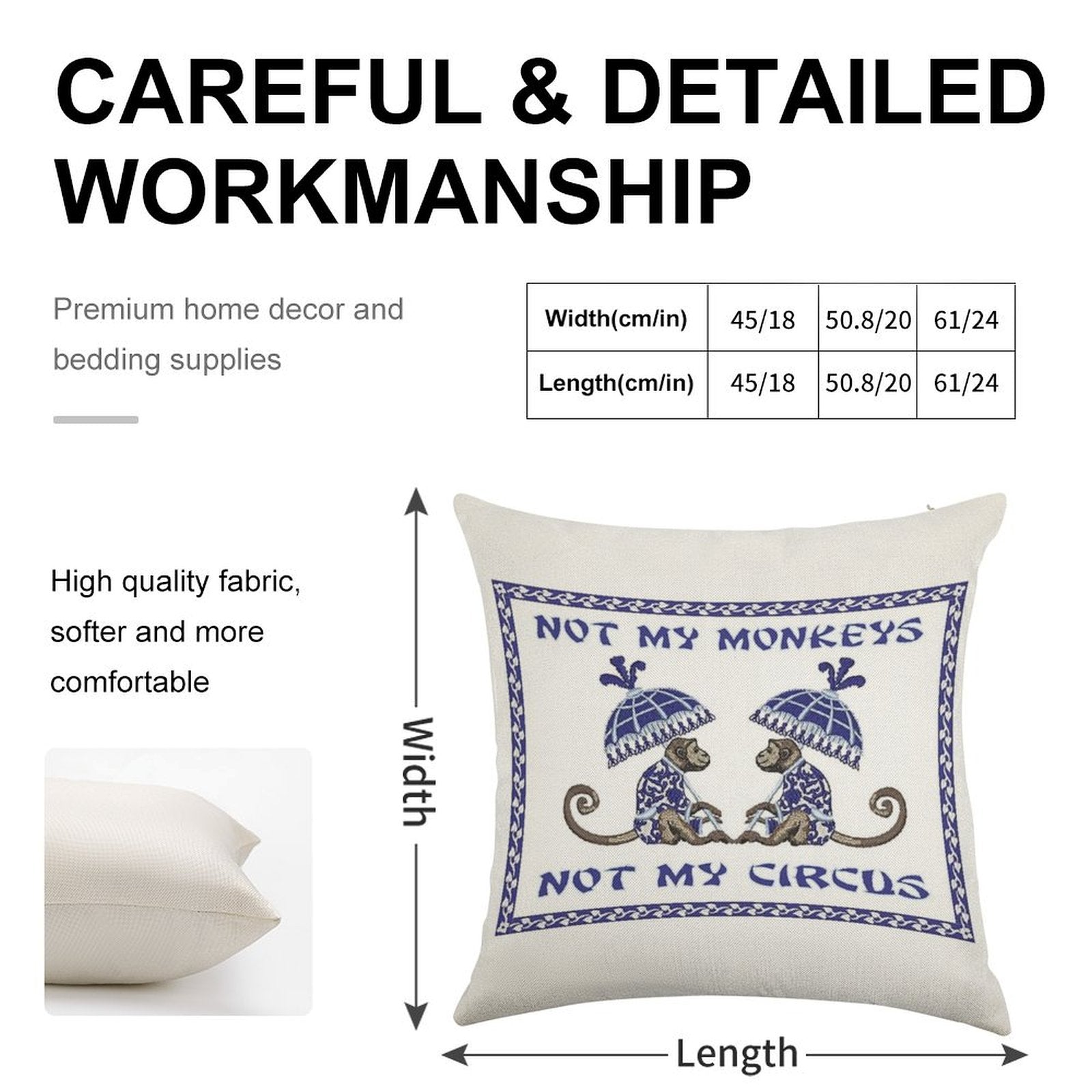 - Double-Stitched Edges: Precision stitching prevents fraying, stretching, and pilling, ensuring your Not My Monkeys Linen Throw Pillow Cover stays pristine through countless uses.