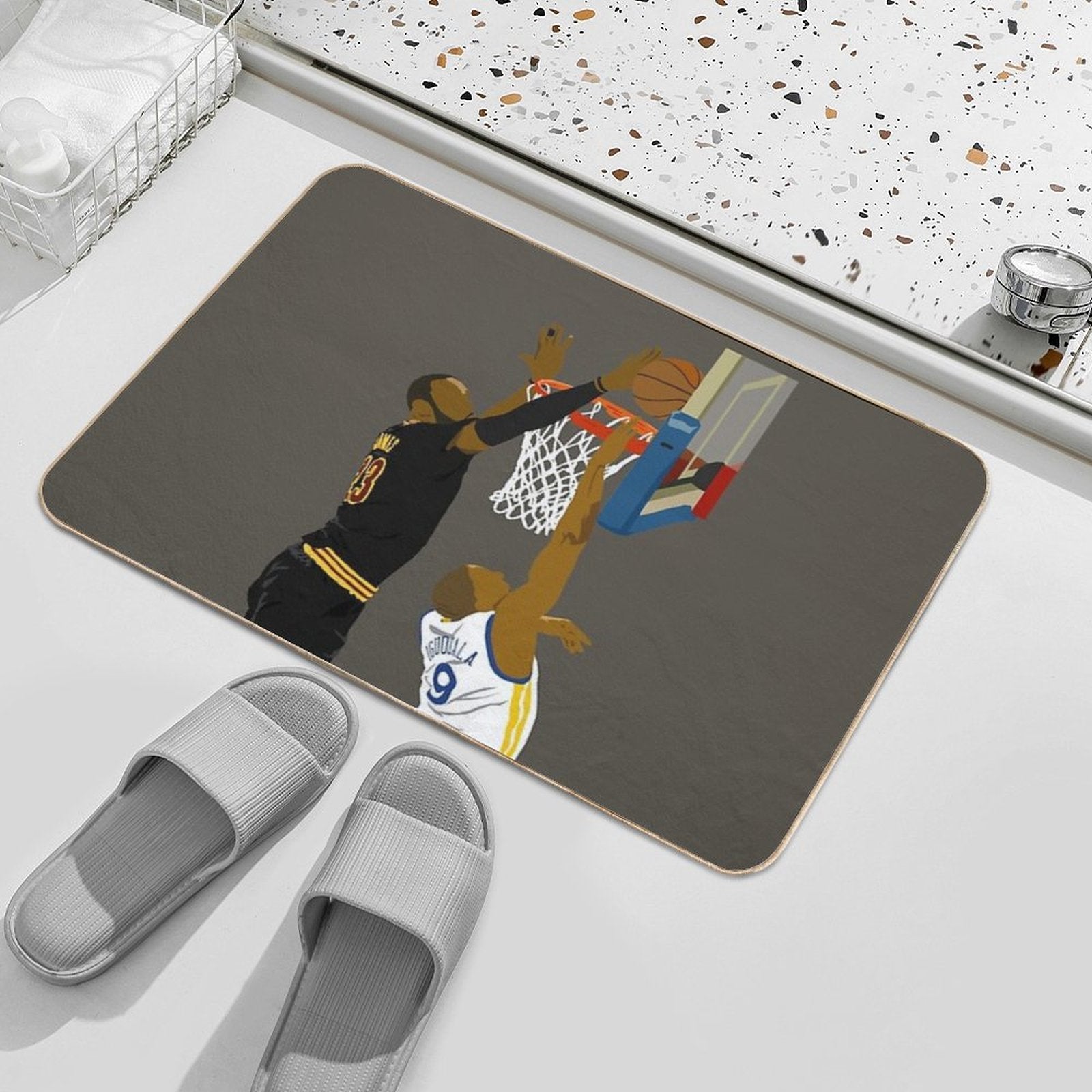 - Non-slip rubber backing grips floors securely, ideal for OH, BLOCKED BY JAMES Mat placements on tiles, wood, or marble.