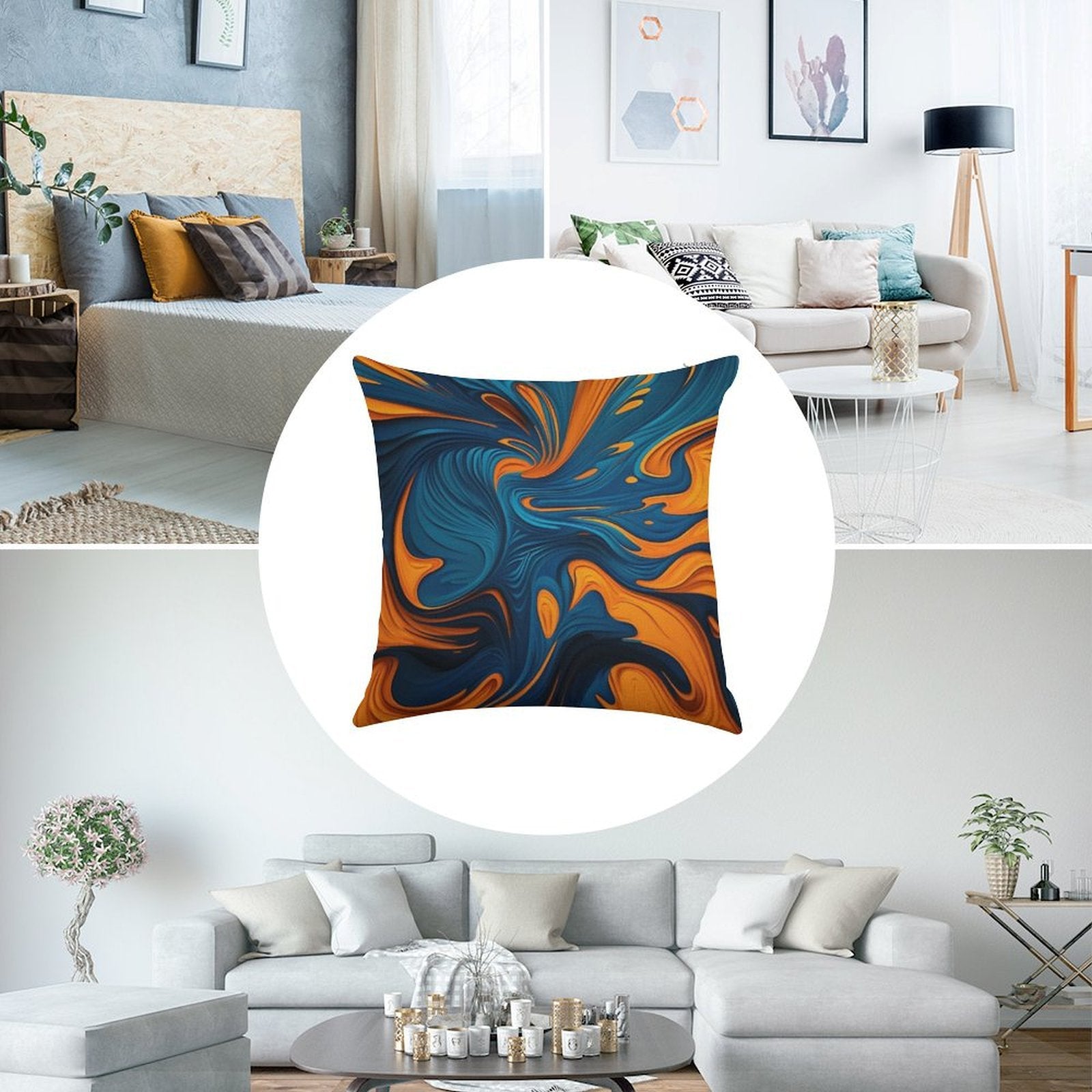 - Machine or hand washable (max 45°C). Avoid bleach and prolonged soaking to preserve the vibrant texture of your Oil Paint Orange And Blue Pattern Luxury Pillow Cover.