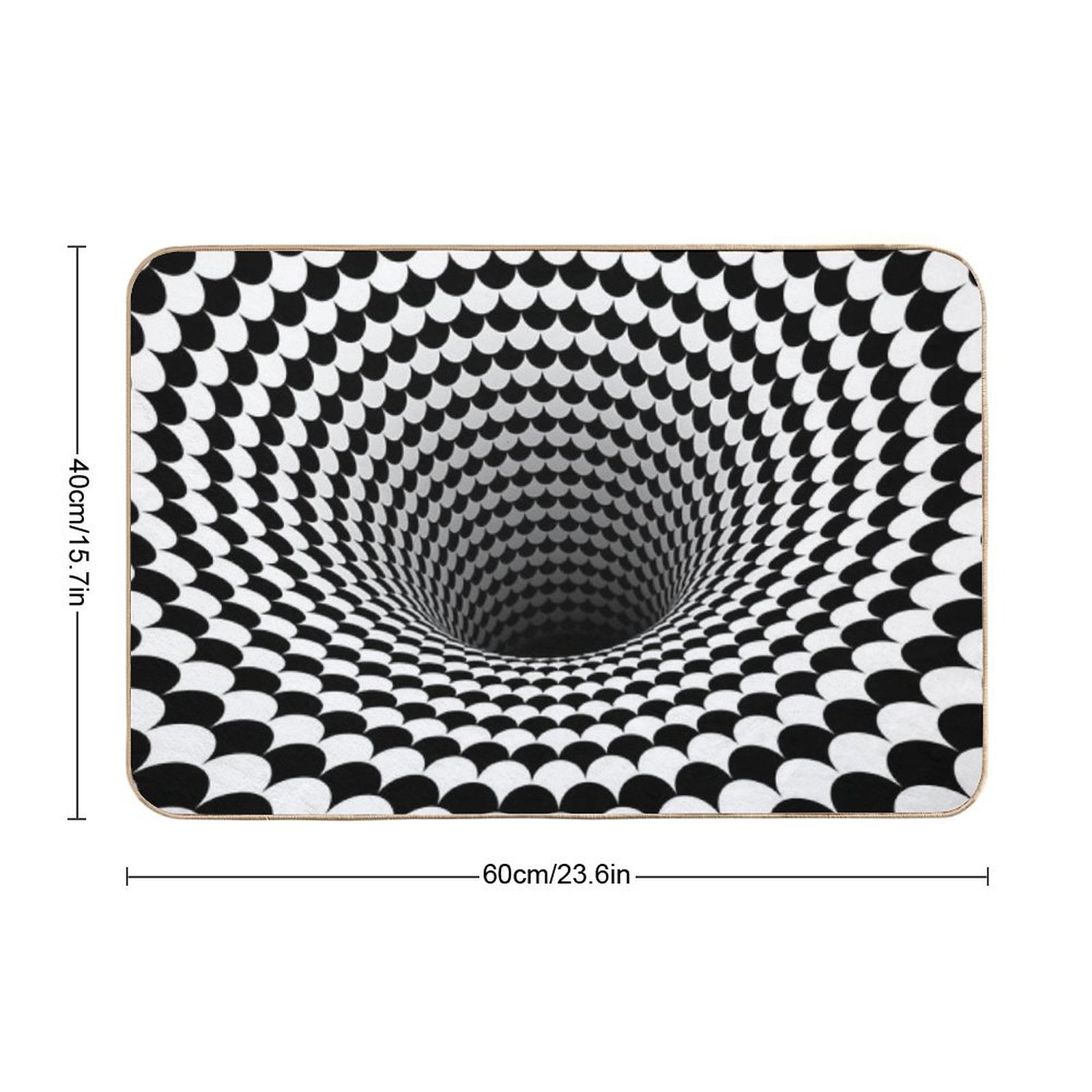 ✔️ Longevity Guaranteed: Resists fraying, peeling, and flattening – a true Optical Illusion Black And White Scales Houndstooth Black Hole Vortex Mat investment.