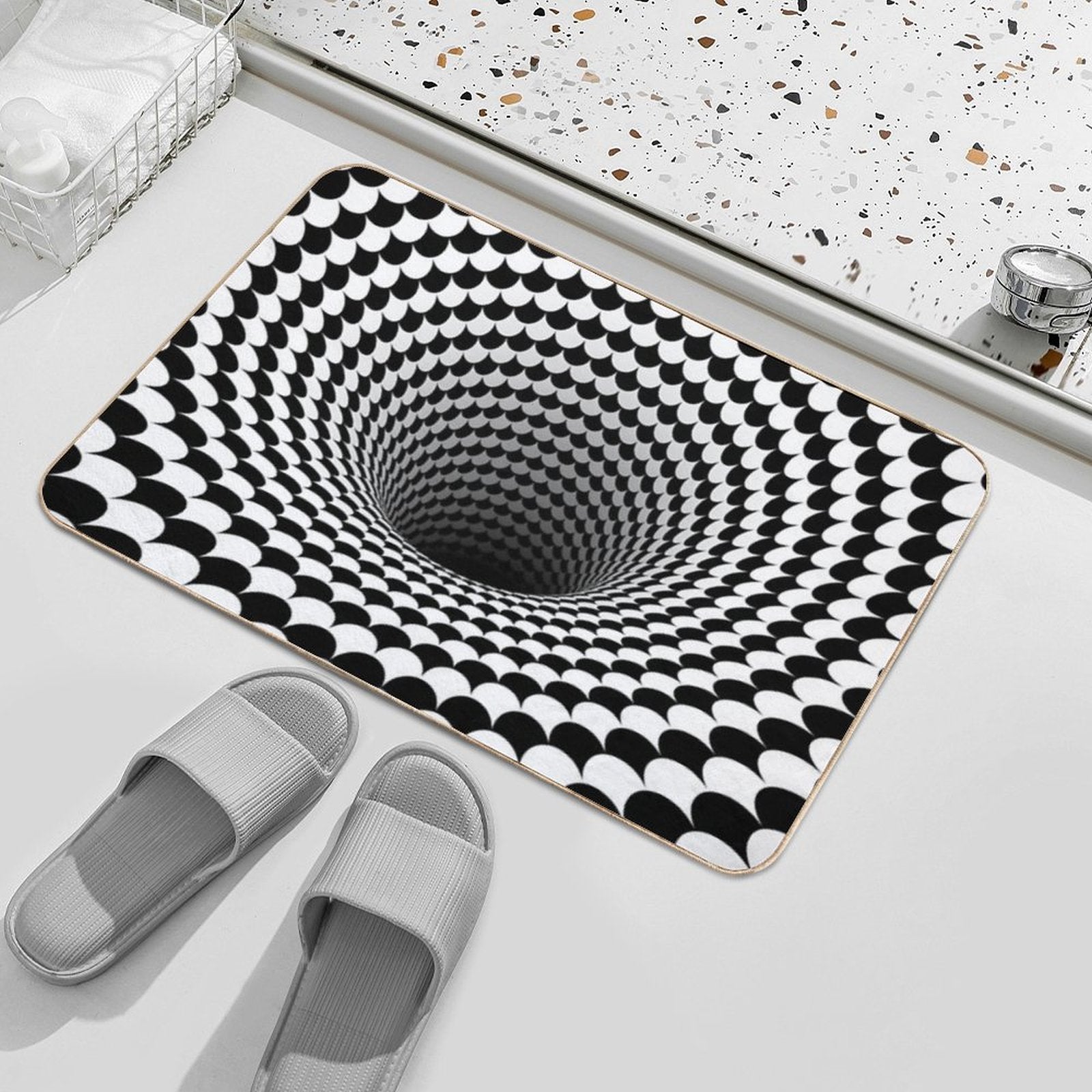 - Rapid-drying flannel soaks up water 3x faster than standard mats, preventing puddles in Optical Illusion Black And White Scales Houndstooth Black Hole Vortex bathrooms or poolside areas.