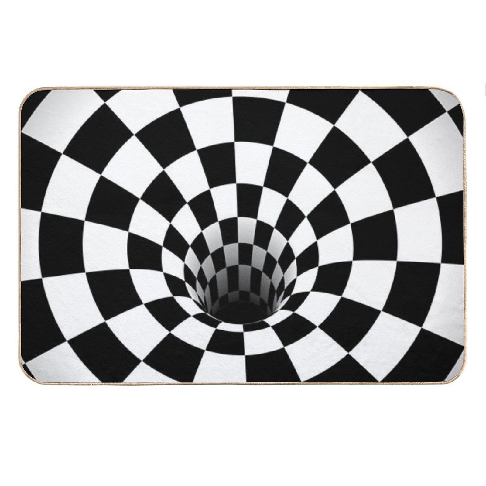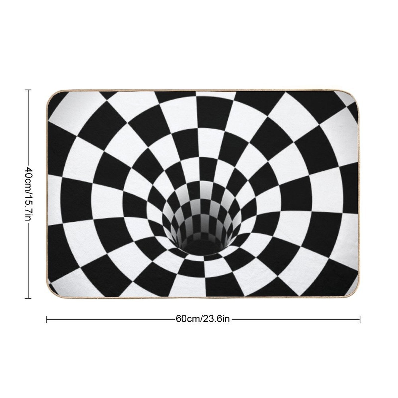 - Non-slip rubber backing grips floors securely, ideal for Optical Illusion Black Hole Checkerboard (BlackWhite) Mat placements on tiles, wood, or marble.