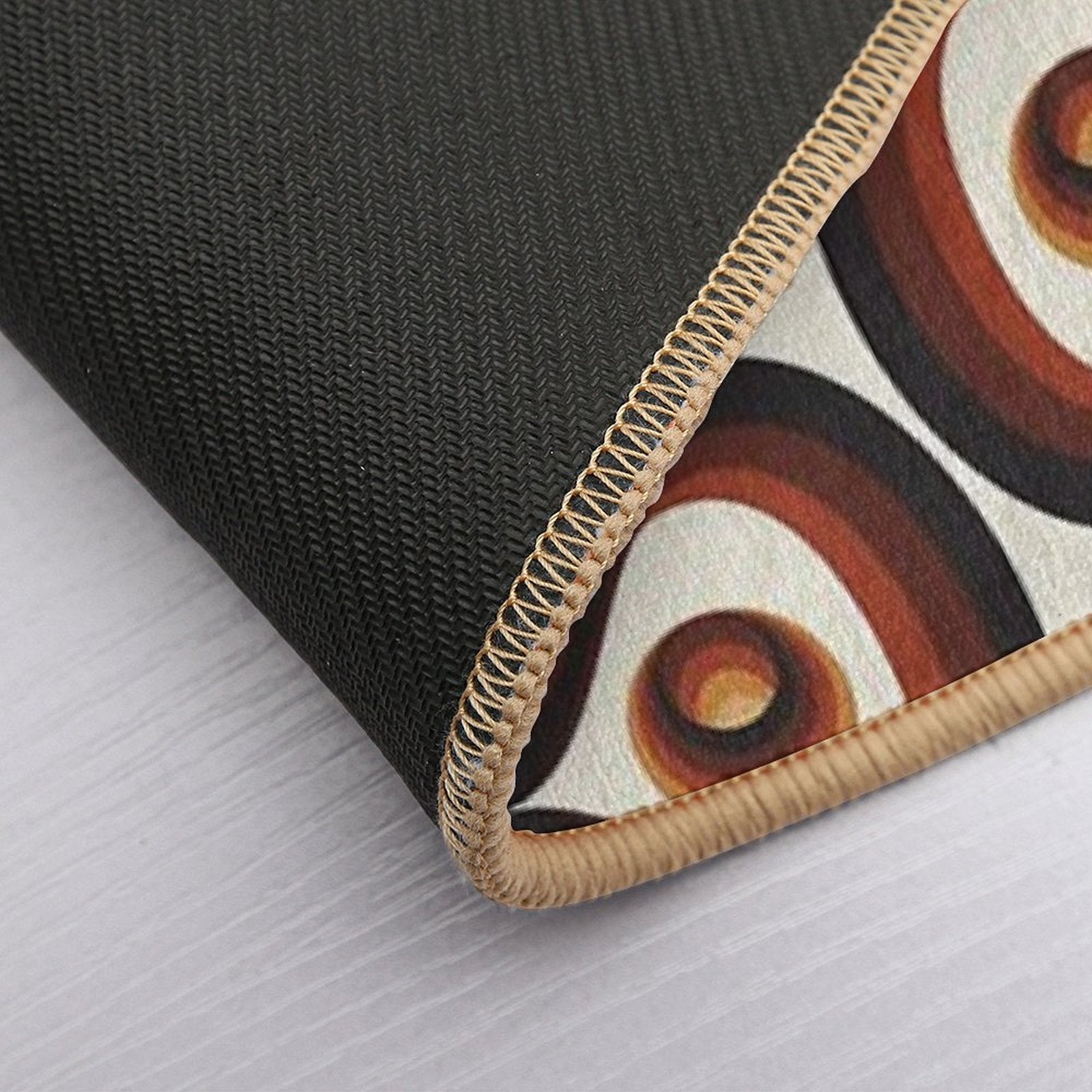 - Non-slip rubber backing grips floors securely, ideal for Orange, Brown, And Ivory Retro 1960s Circular Pattern Mat placements on tiles, wood, or marble.
