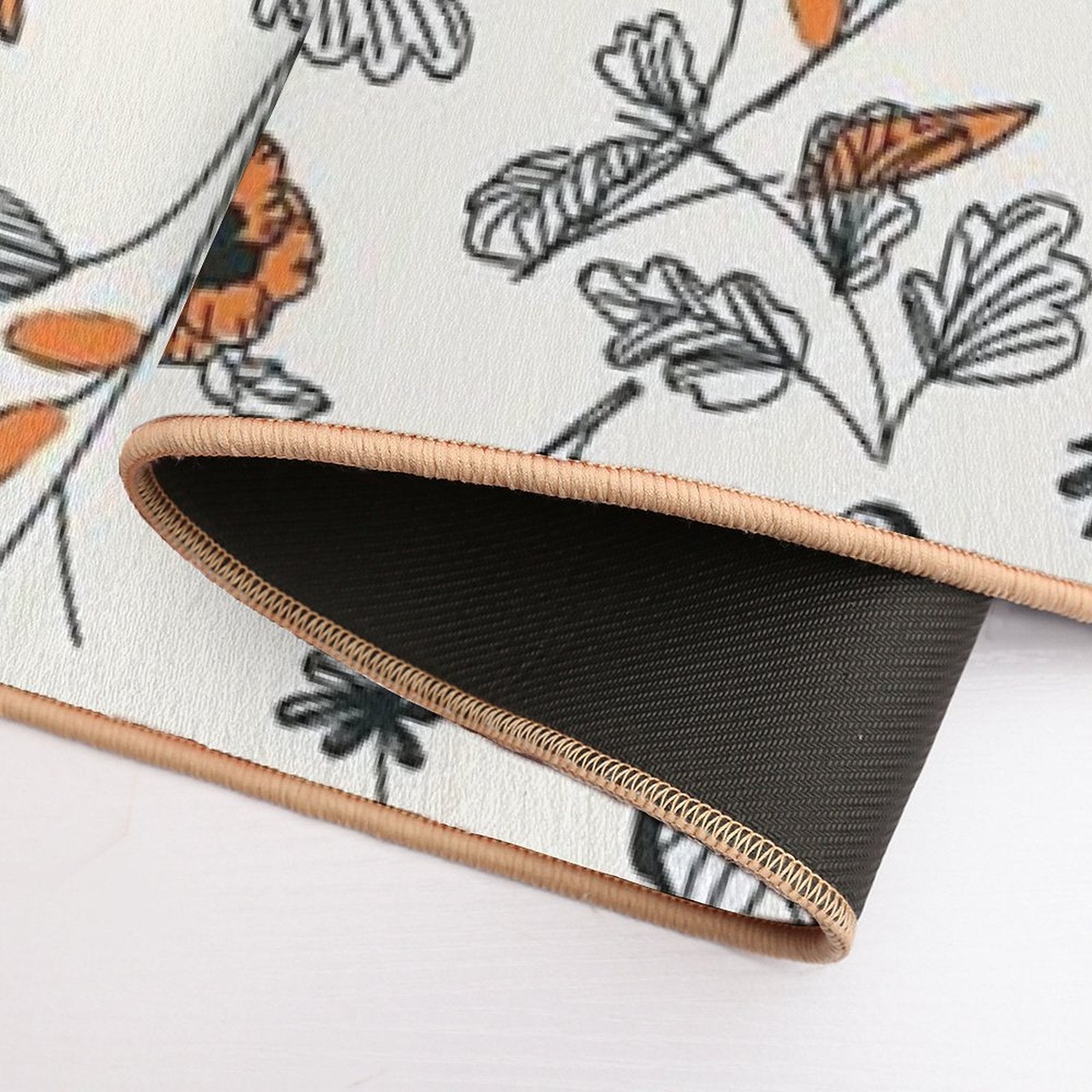 - Non-slip rubber backing grips floors securely, ideal for Orange Flower Pattern Mat placements on tiles, wood, or marble.