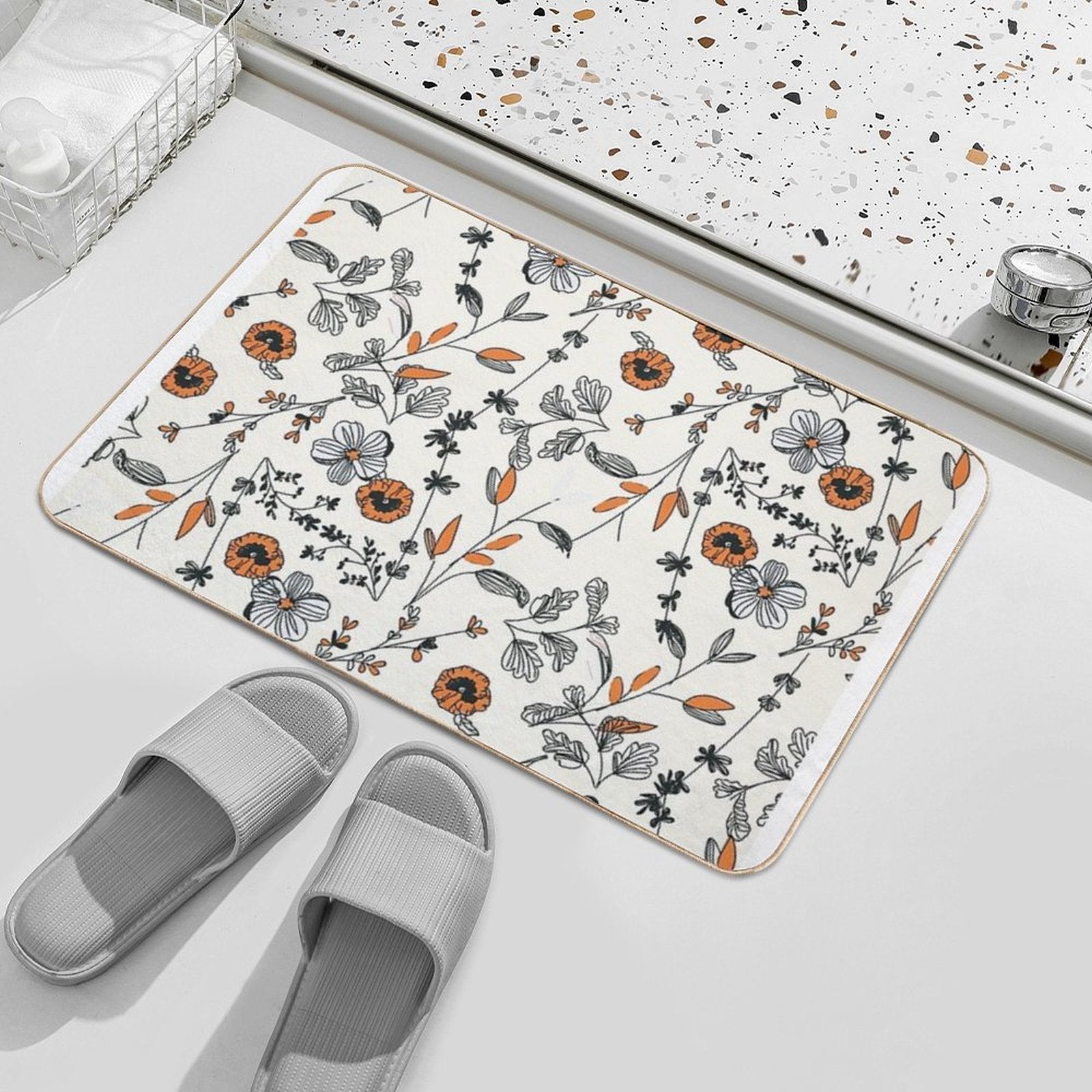 Orange Flower Pattern Stain-Proof Bath Mat