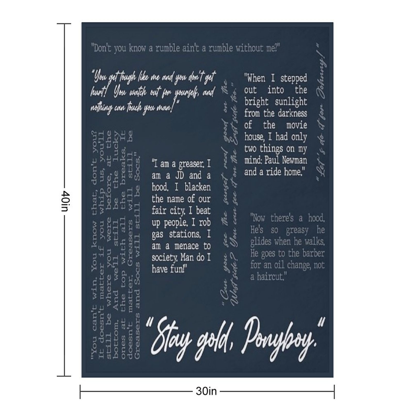 - Gift-Ready Appeal: Wrap your loved ones in joy with a Outsiders Word Cloud - Stay Gold Ponyboy blanket that’s as practical as it is heartfelt.