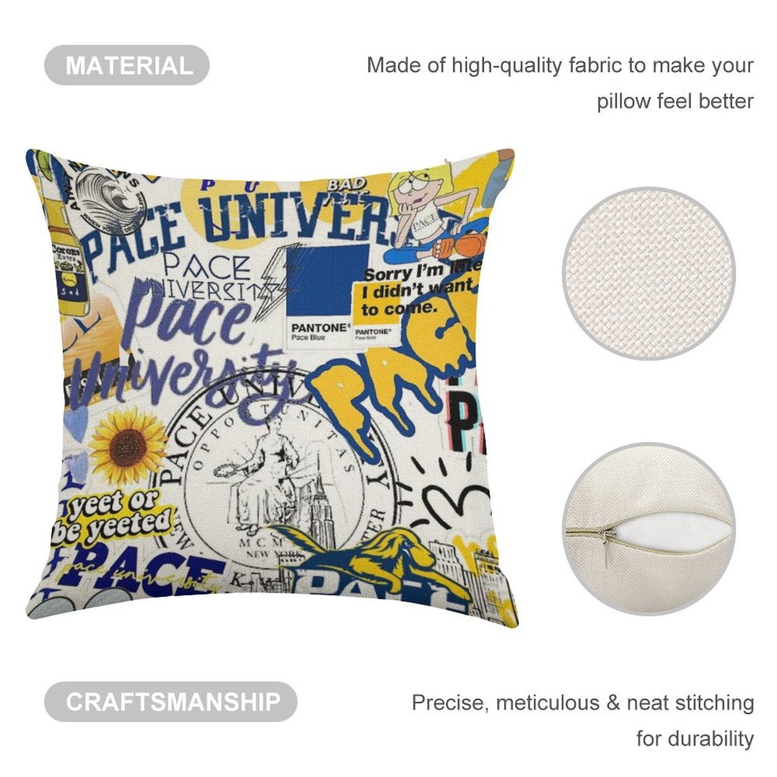 - Machine or hand washable (max 45°C). Avoid bleach and prolonged soaking to preserve the vibrant texture of your Pace University Collage Artwork Luxury Pillow Cover.