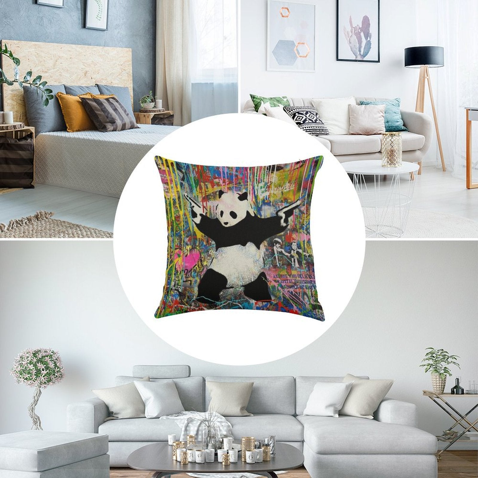 - Machine or hand washable (max 45°C). Avoid bleach and prolonged soaking to preserve the vibrant texture of your Panda With Guns Stick Em Up - Pop Street Art Banksy Luxury Pillow Cover.