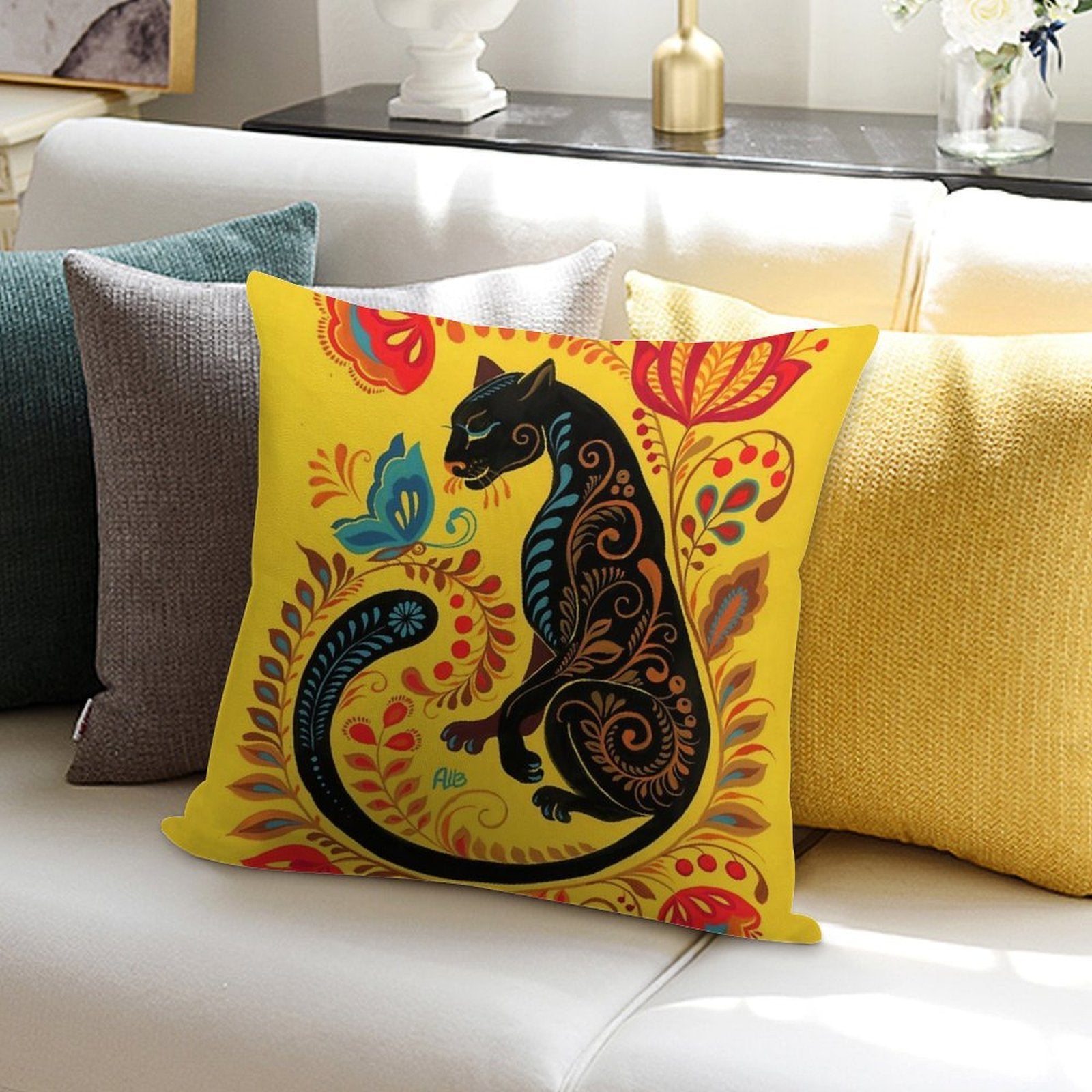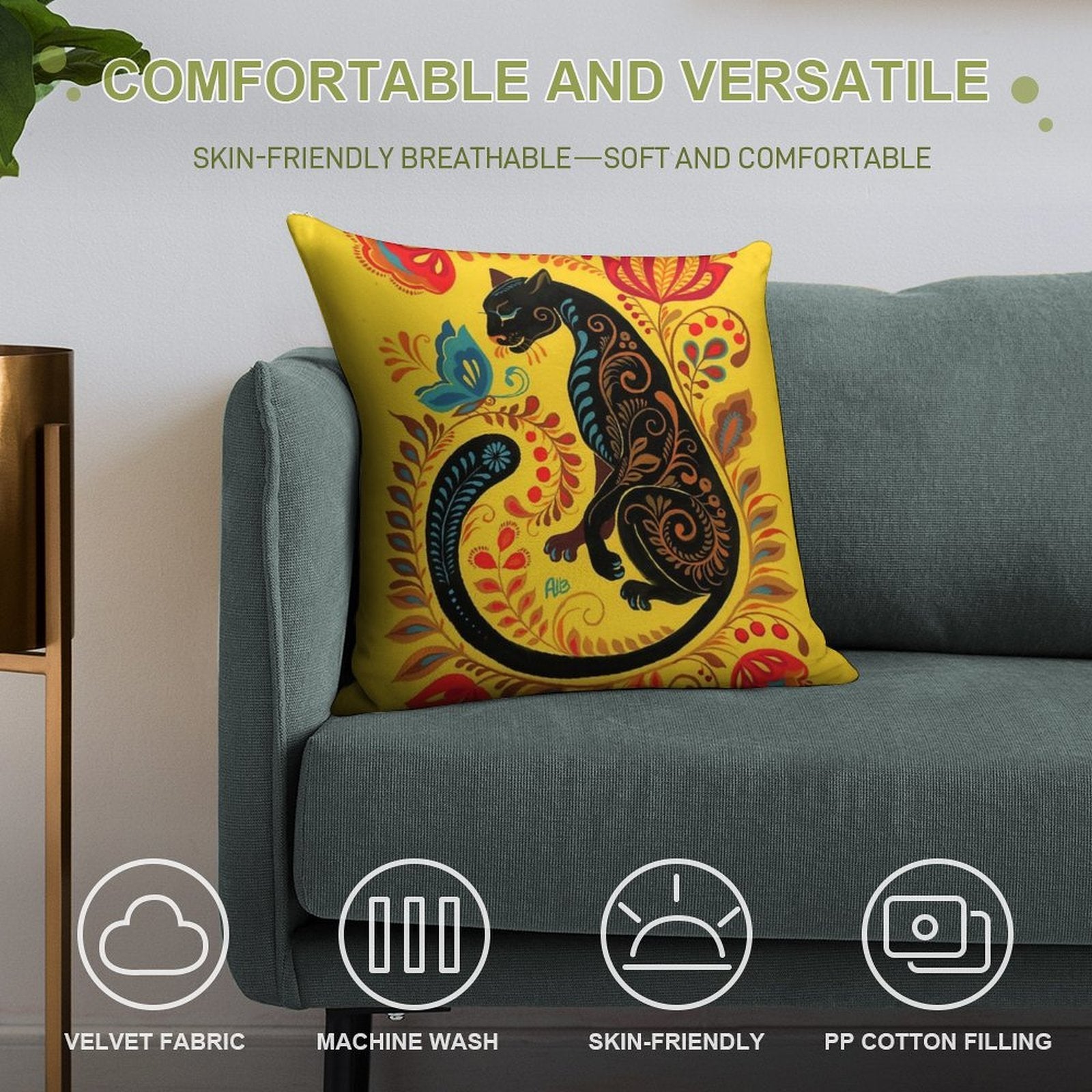 Panther & Butterfly Folk Art Soft Anti-Pilling Throw Pillow