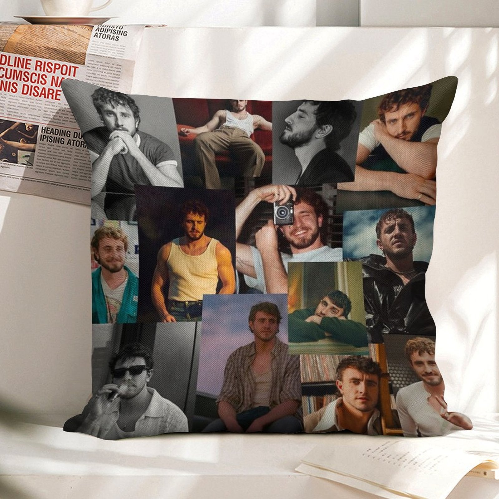 Upgrade your living space with our Paul Mescal Collage Linen Throw Pillow Cover, blending timeless elegance and modern functionality. Crafted from breathable, durable linen-cotton fabric, this Paul Mescal Collage Customizable Home Decor Gift features reinforced edges and a hidden zipper for a flawless finish. Perfect for bedrooms, RVs, or vacation homes, our Paul Mescal Collage Luxury Pillow Cover offers versatility and style, making it ideal for everyday use or heartfelt gifting.
