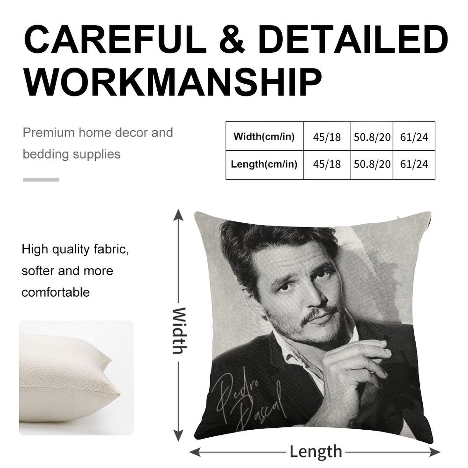 - Double-Stitched Edges: Precision stitching prevents fraying, stretching, and pilling, ensuring your Pedro Pascal - BW III Linen Throw Pillow Cover stays pristine through countless uses.