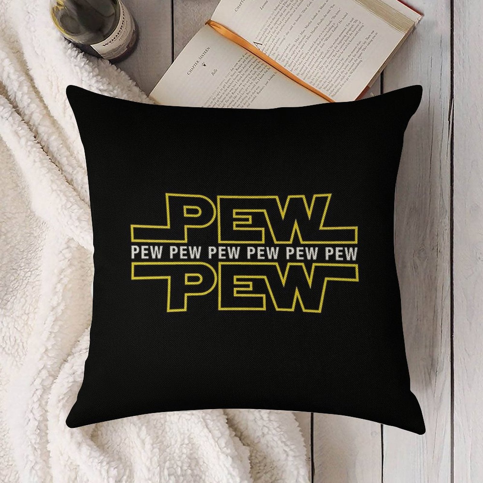 - Machine or hand washable (max 45°C). Avoid bleach and prolonged soaking to preserve the vibrant texture of your Pew Pew Pew Luxury Pillow Cover.