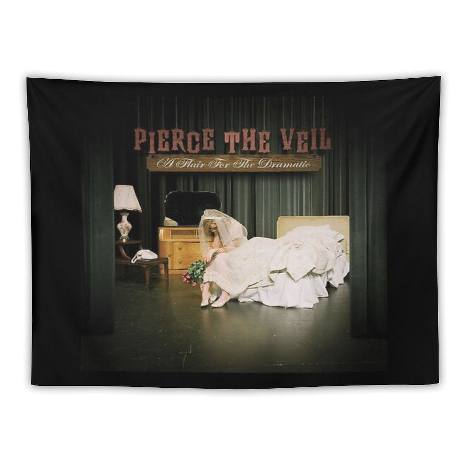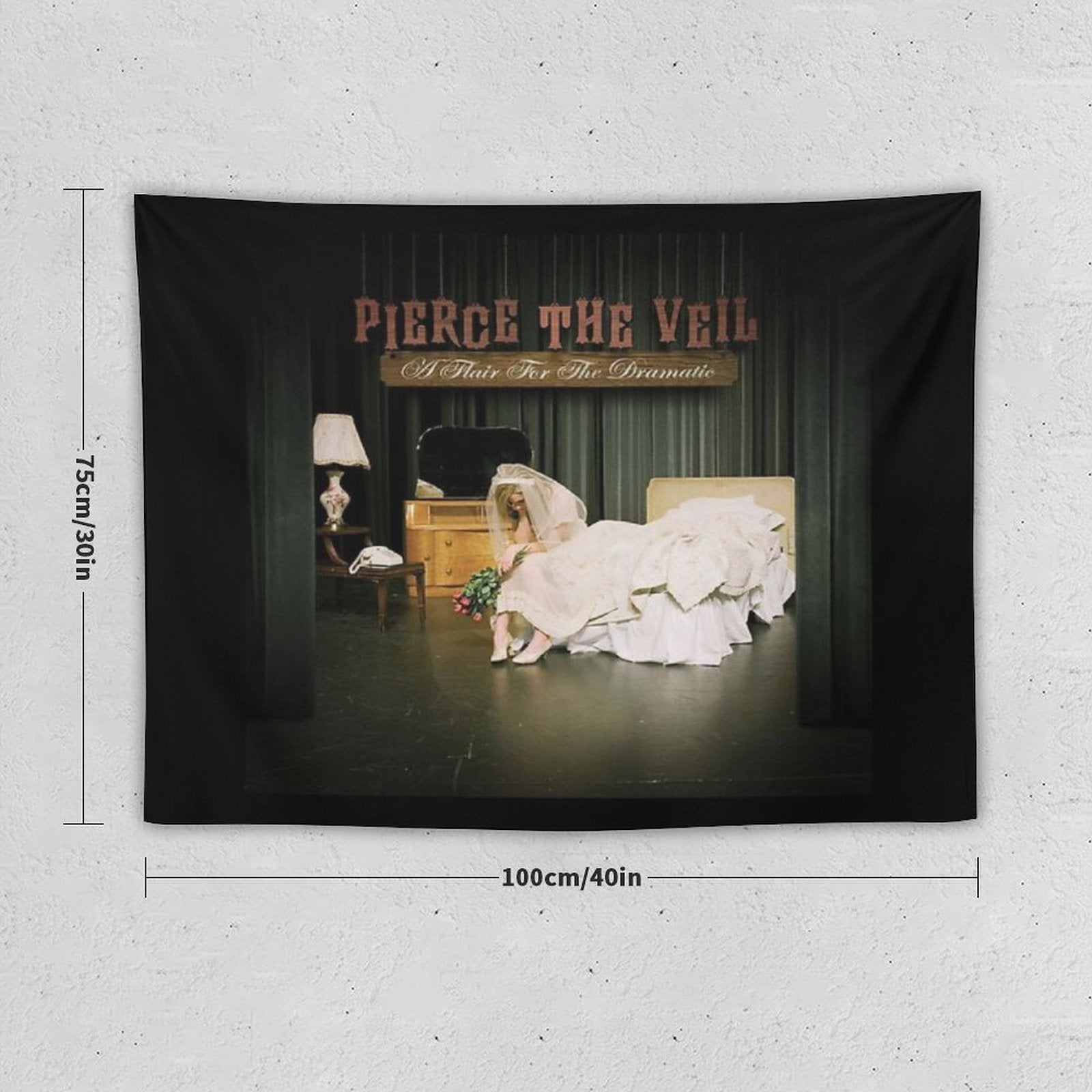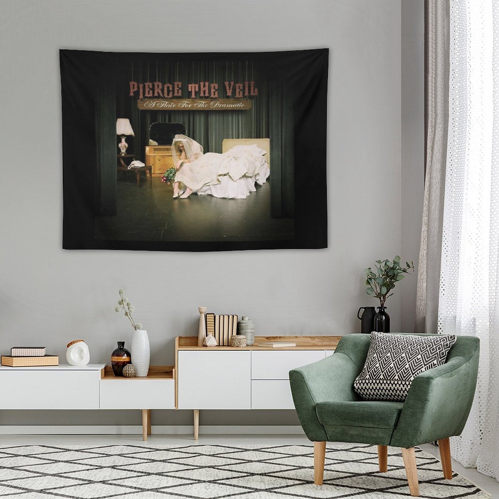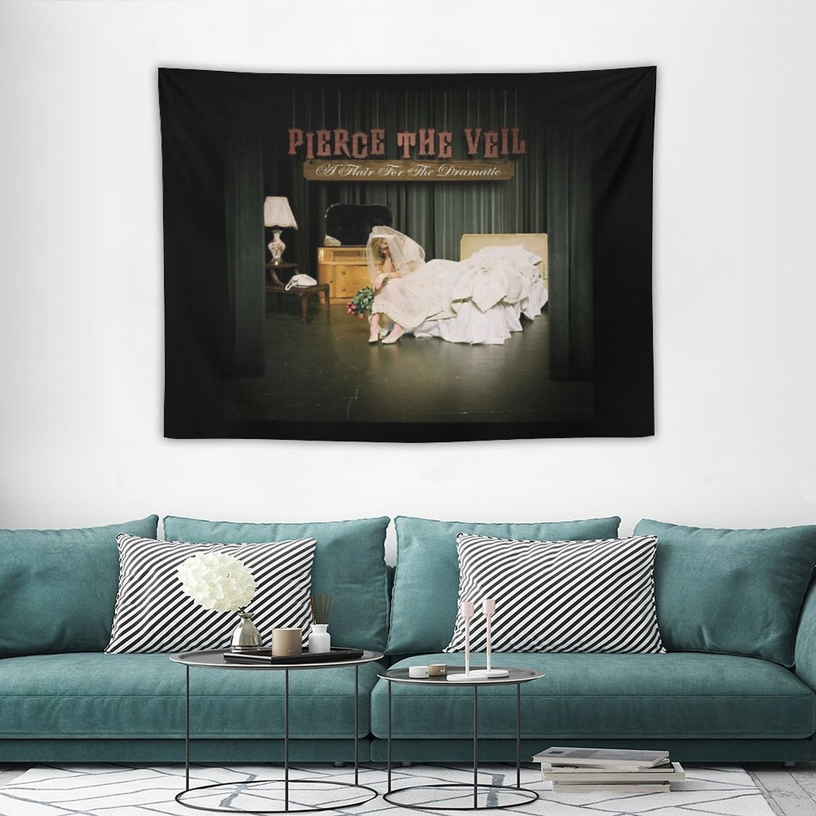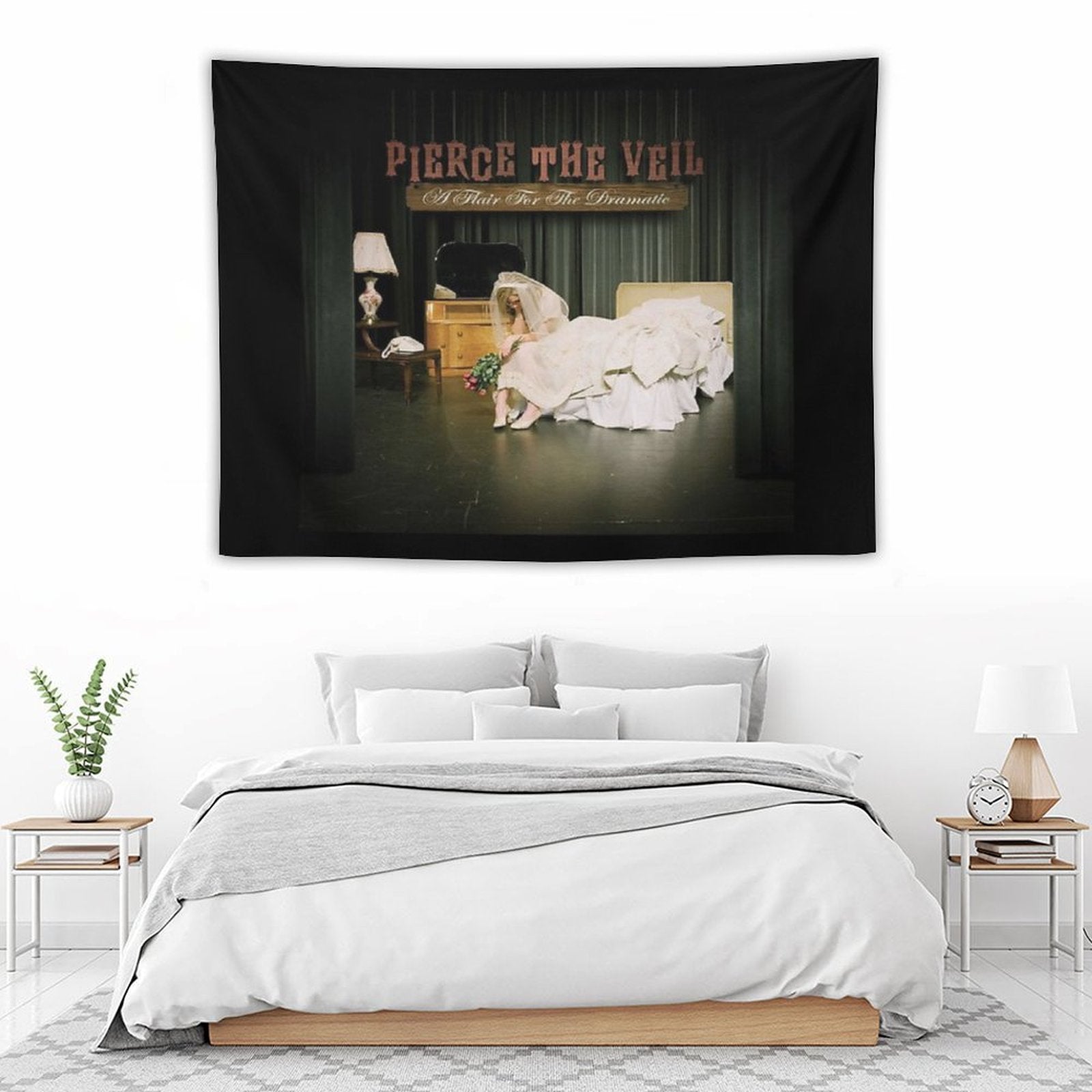 BionZax's Pierce The Veil A Flair for The Dramatic Tapestry for Bedroom, College Dorm. Pierce The Veil A Flair for The Dramatic Tapestry to decorate your bedroom, college dorm, living room, or kitchen wall, it is the best gift for funny, meme, aesthetic, trendy, simple, fashion, music, abstract, fantasy, modern tapestry for girls, men, boys, teen, women, kids.