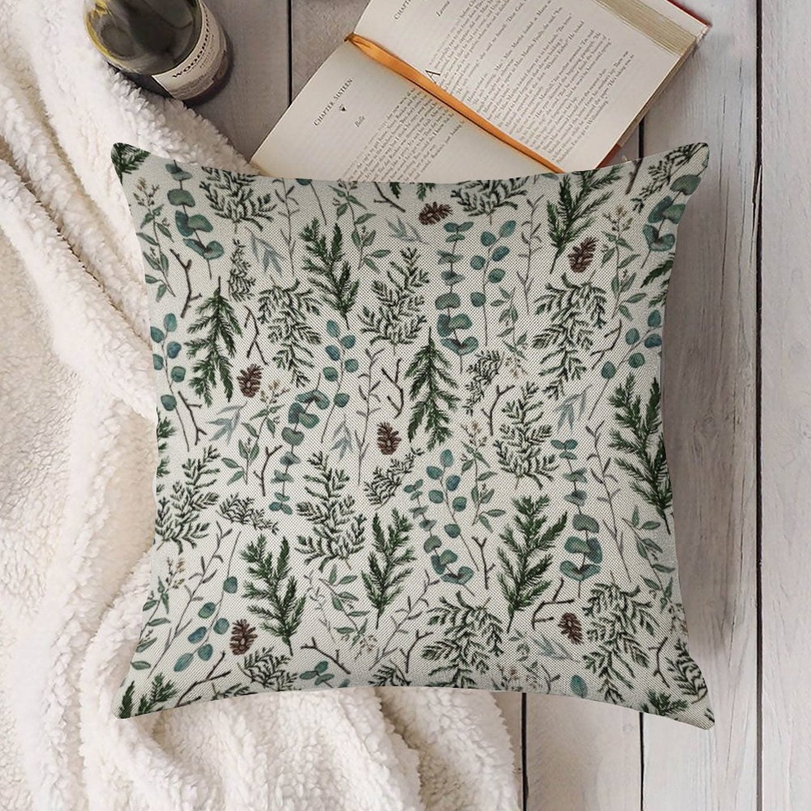 Pine And Eucalyptus Greenery Linen Throw Pillow Cover