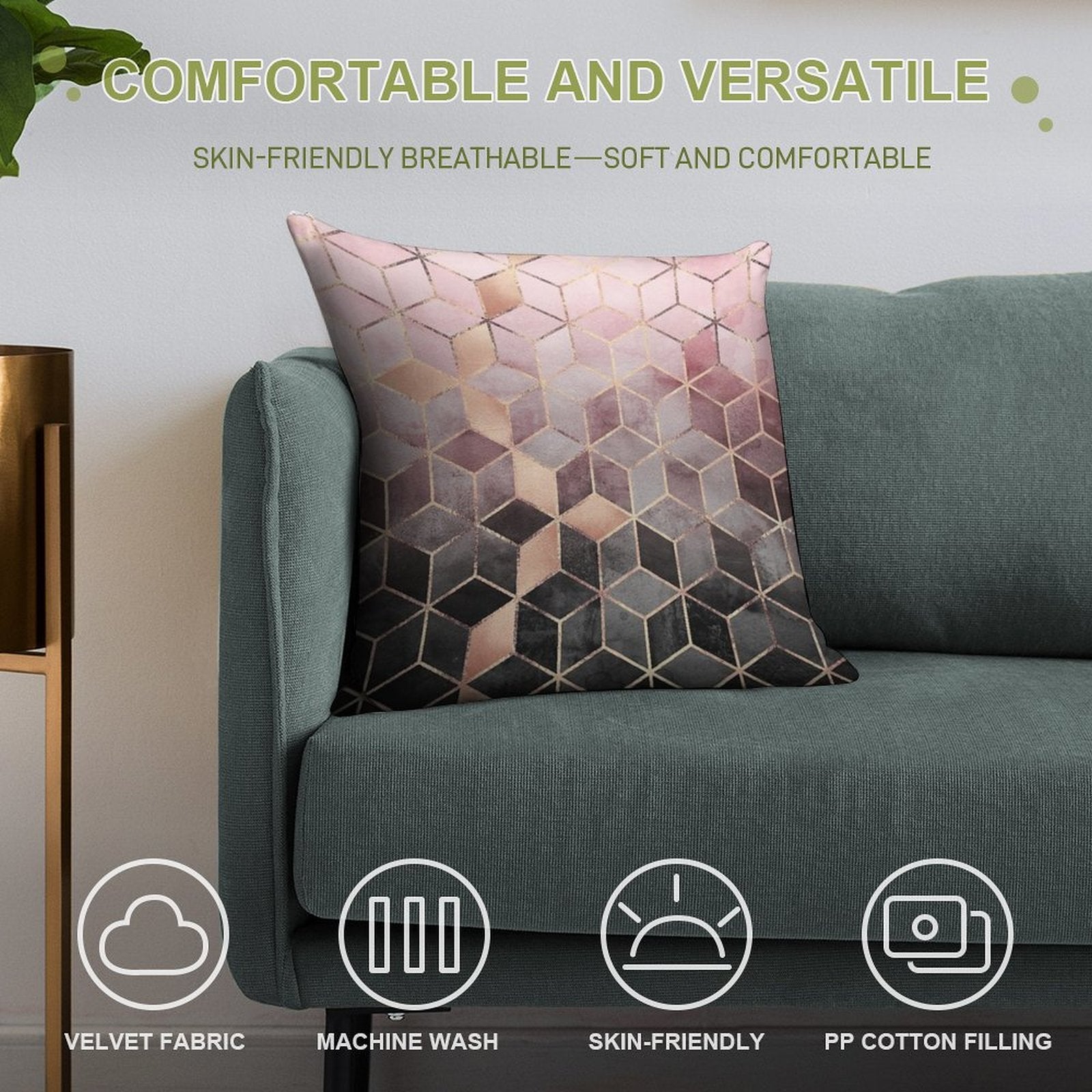 ✔️ Fits Any Style – Neutral tones and plush texture suit all Pink And Grey Gradient Cubes decors.
