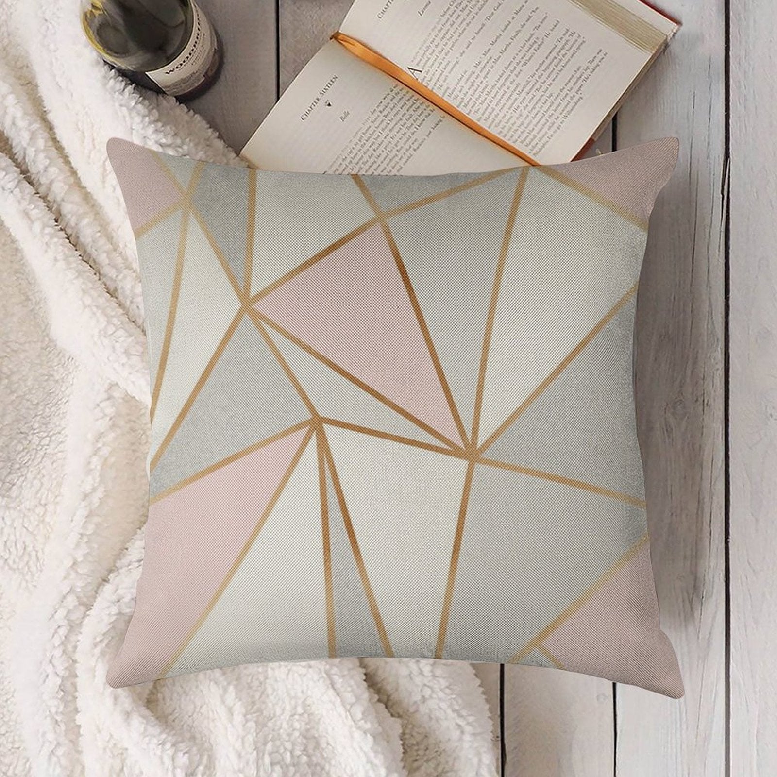 - Machine or hand washable (max 45°C). Avoid bleach and prolonged soaking to preserve the vibrant texture of your Pink, Grey & Gold Geo Luxury Pillow Cover.