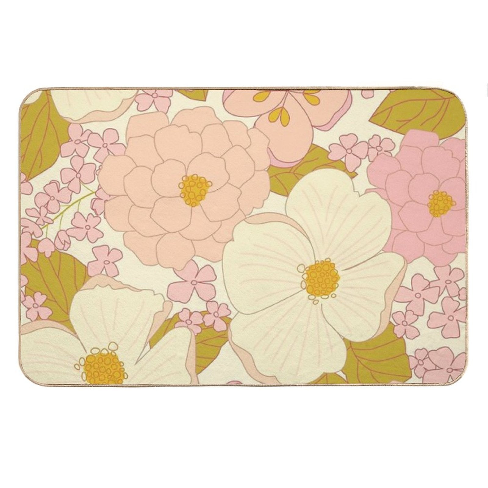 - Non-slip rubber backing grips floors securely, ideal for Pink Pastel Vintage Floral Pattern Mat placements on tiles, wood, or marble.
