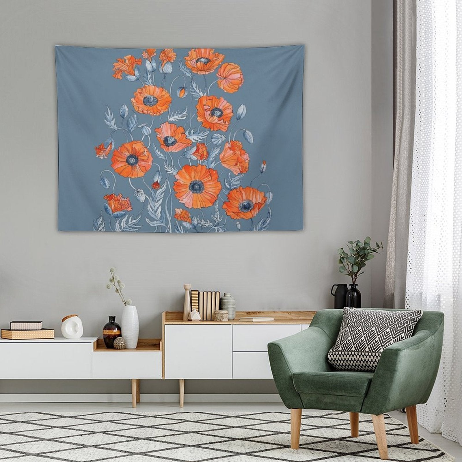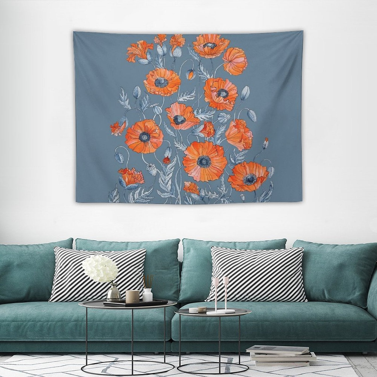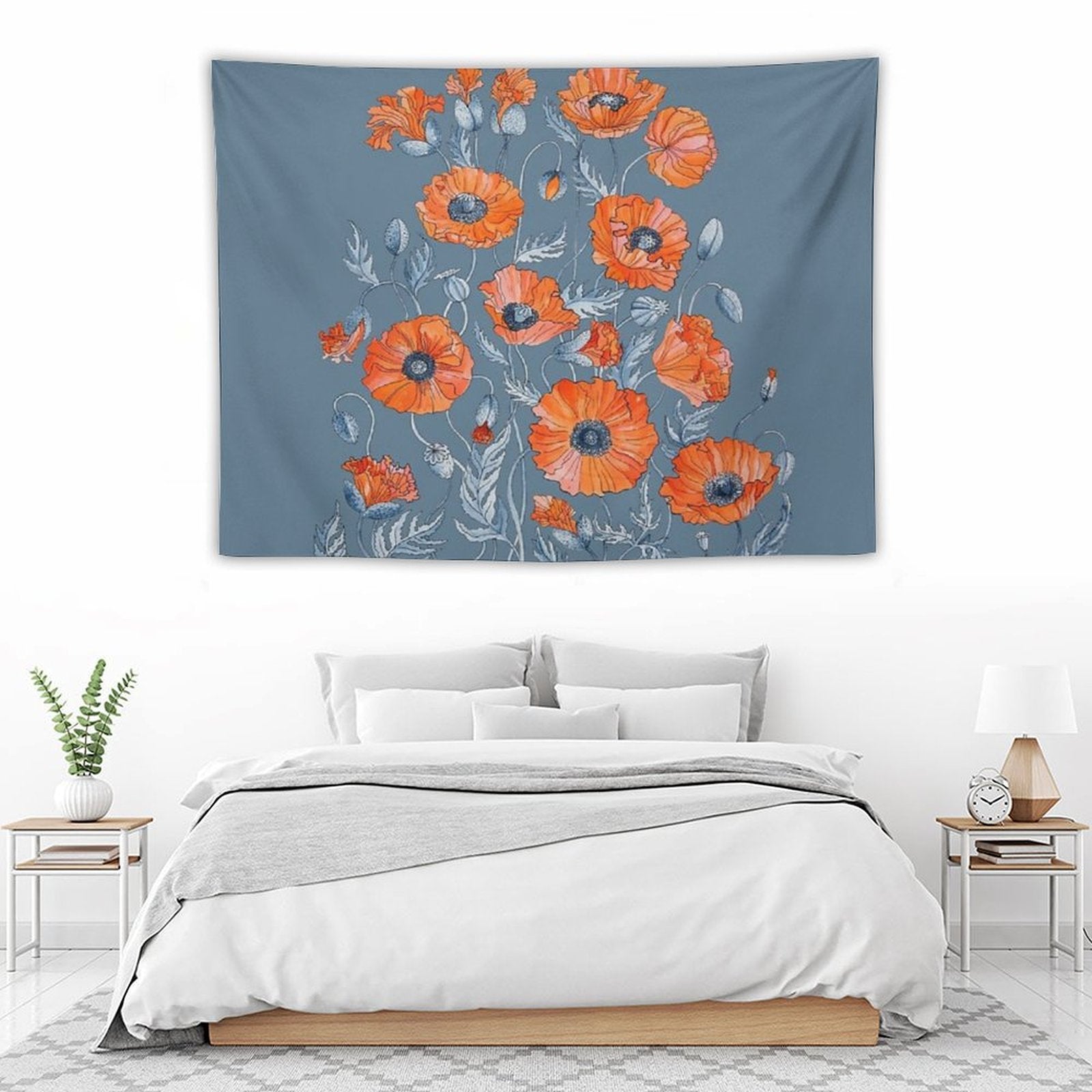 BionZax's Poppies Floral Botanical Art Tapestry for Bedroom, College Dorm. Poppies Floral Botanical Art Tapestry to decorate your bedroom, college dorm, living room, or kitchen wall, it is the best gift for funny, meme, aesthetic, trendy, simple, fashion, music, abstract, fantasy, modern tapestry for girls, men, boys, teen, women, kids.