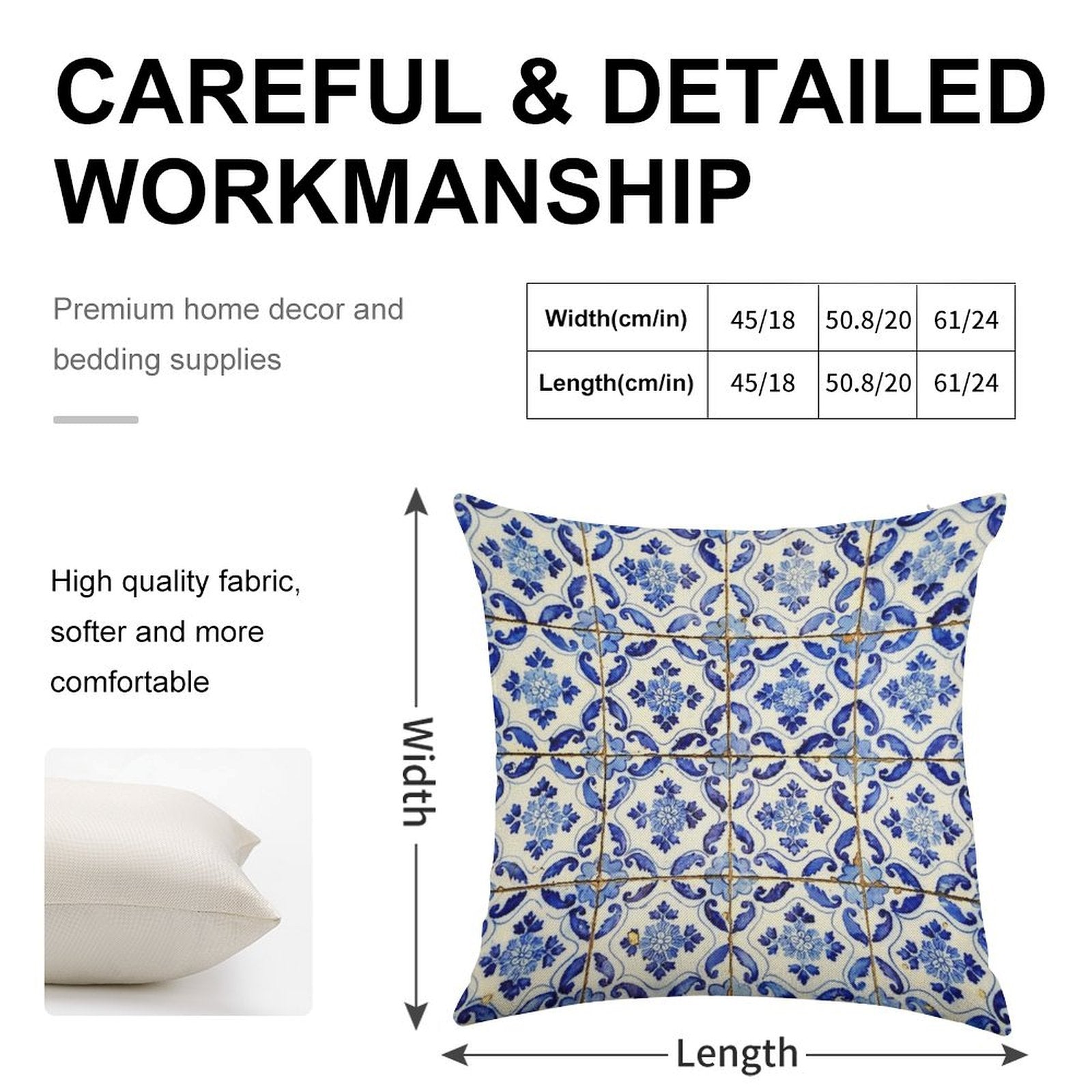 - Double-Stitched Edges: Precision stitching prevents fraying, stretching, and pilling, ensuring your Portuguese Tiles. Blue Flowers And Leaves Linen Throw Pillow Cover stays pristine through countless uses.