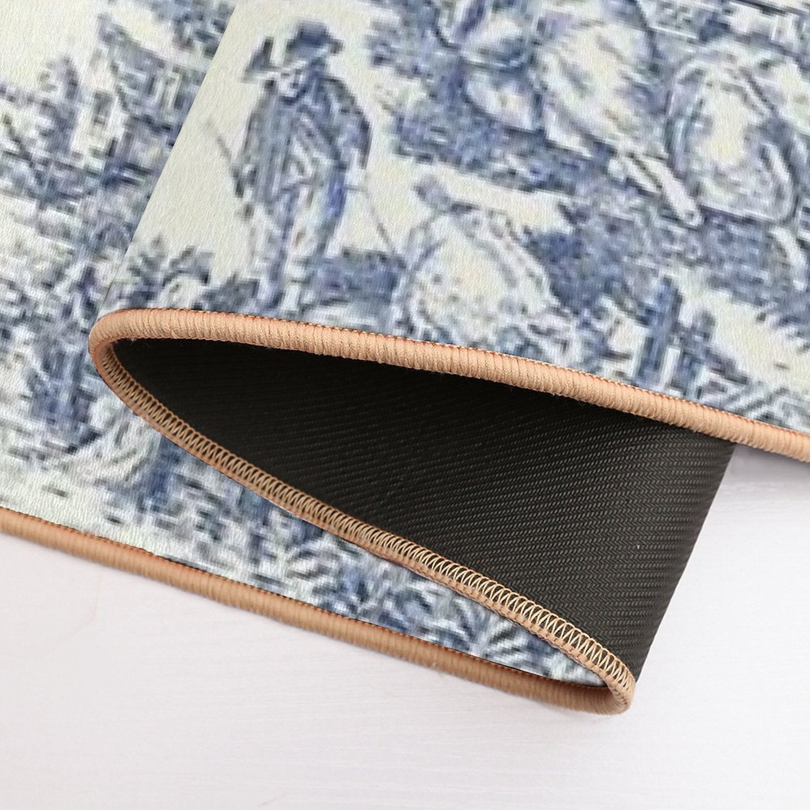 - Non-slip rubber backing grips floors securely, ideal for Powder Blue French Toile Picnic Designs Mat placements on tiles, wood, or marble.