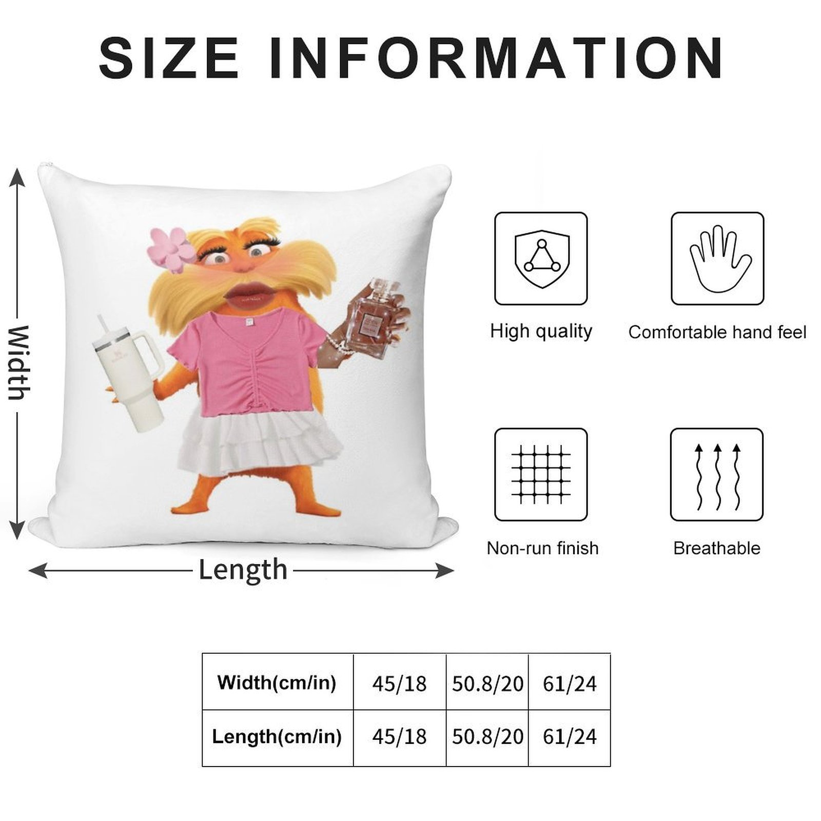 - Reinforced stitching along the edges prevents fraying and extends the life of your Preppy Lorax Pillowcase.