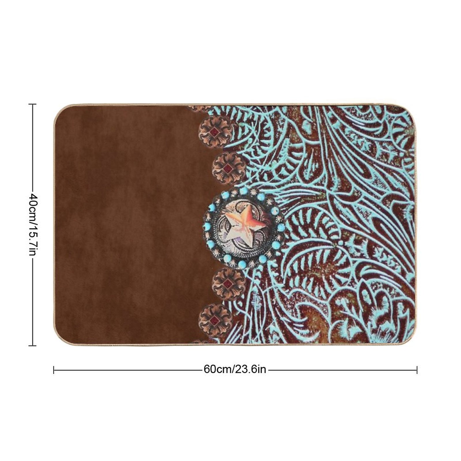 - Non-slip rubber backing grips floors securely, ideal for Primitive Cowboy Cowgirl Western Country Brown Turquoise Mat placements on tiles, wood, or marble.