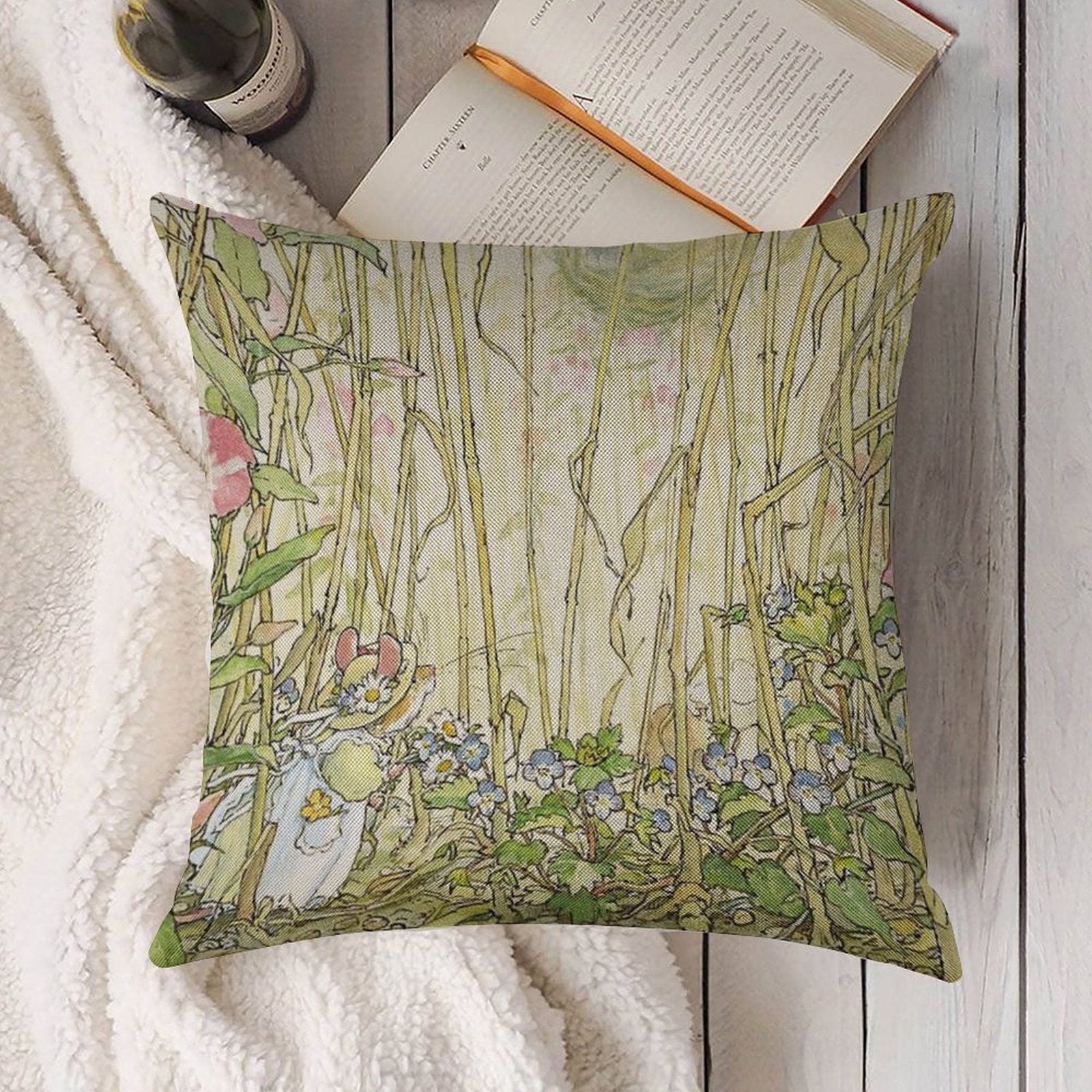Primrose Gathering Flowers Linen Throw Pillow Cover