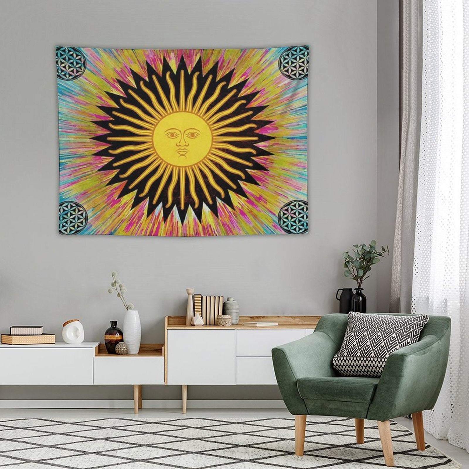 BionZax's Psychedelic Sun Star Bohemian Zen Hippie Festival Tapestry for Bedroom, College Dorm. Psychedelic Sun Star Bohemian Zen Hippie Festival Tapestry to decorate your bedroom, college dorm, living room, or kitchen wall, it is the best gift for funny, meme, aesthetic, trendy, simple, fashion, music, abstract, fantasy, modern tapestry for girls, men, boys, teen, women, kids.