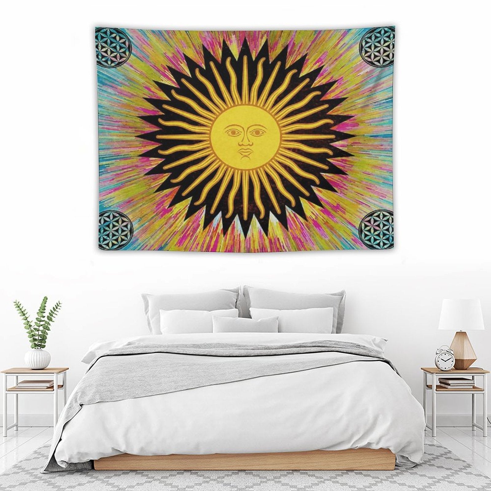 💓【MULTI-FUNCTION】 Used "Psychedelic Sun Star Bohemian Zen Hippie Festival Tapestry" to decorate your bedroom, college dorm, room, living room, kitchen wall, can be used as tapestry or wall hanging, bedspread, tablecloth, dormitory decoration, beach shawl, tablecloth, etc.