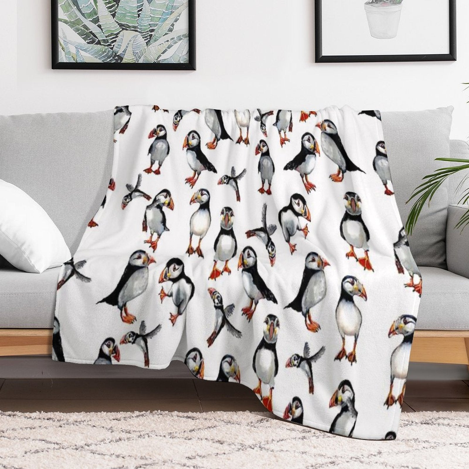 Puffins Pattern Throw Blanket