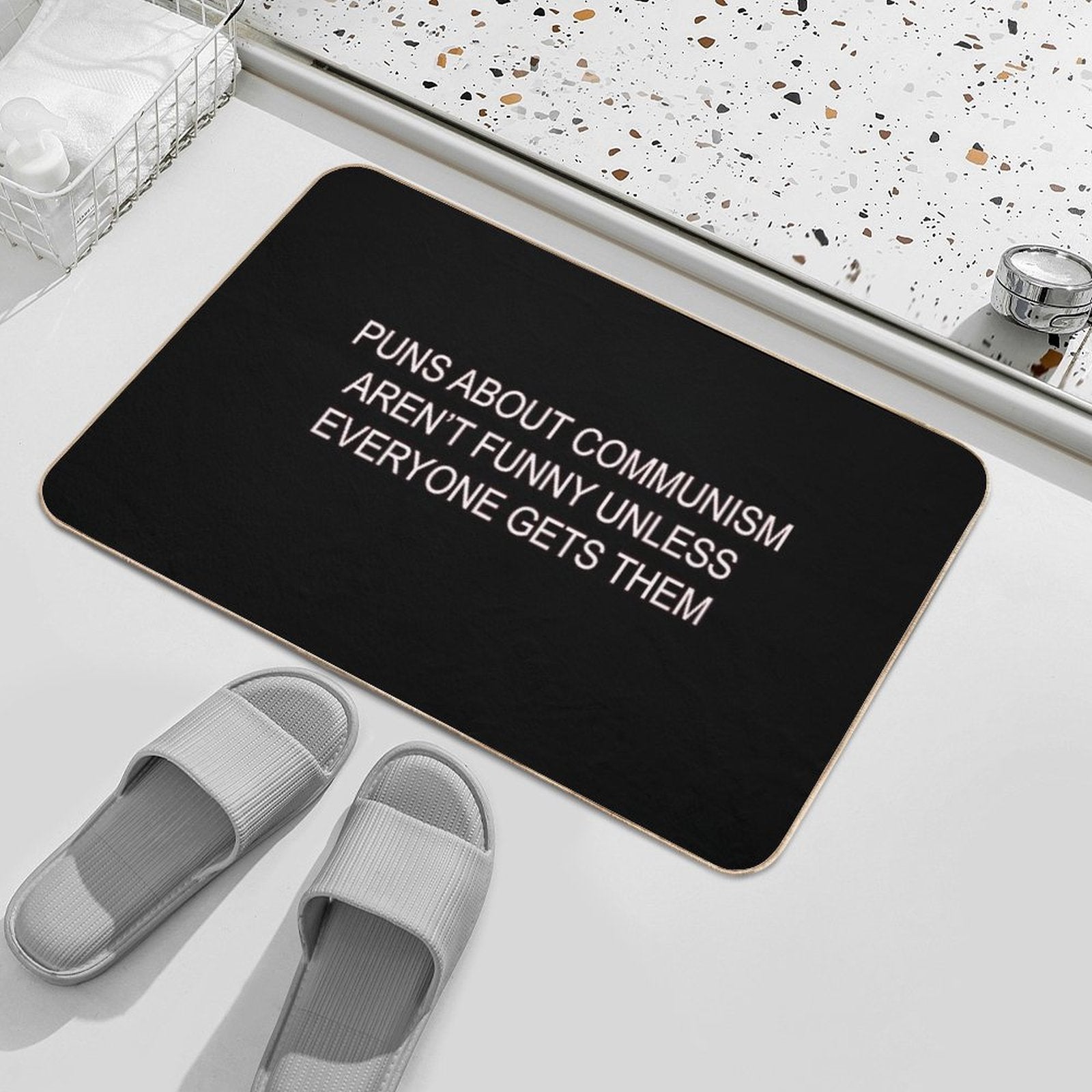 - Use as a vanity rug, guest suite accent, or mudroom defender – the Puns About Communism Aren't Funny Mat adapts to any space.