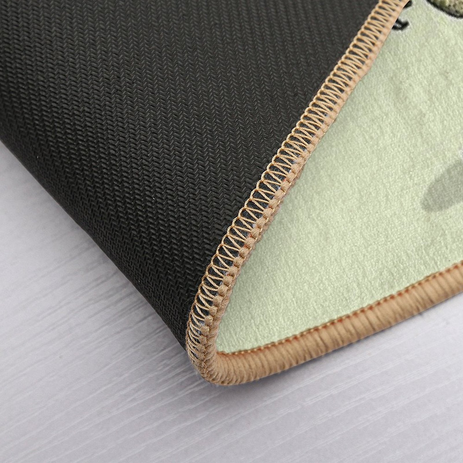 - Non-slip rubber backing grips floors securely, ideal for Raptor Dinosaur Eating Pizza Slice Mat placements on tiles, wood, or marble.